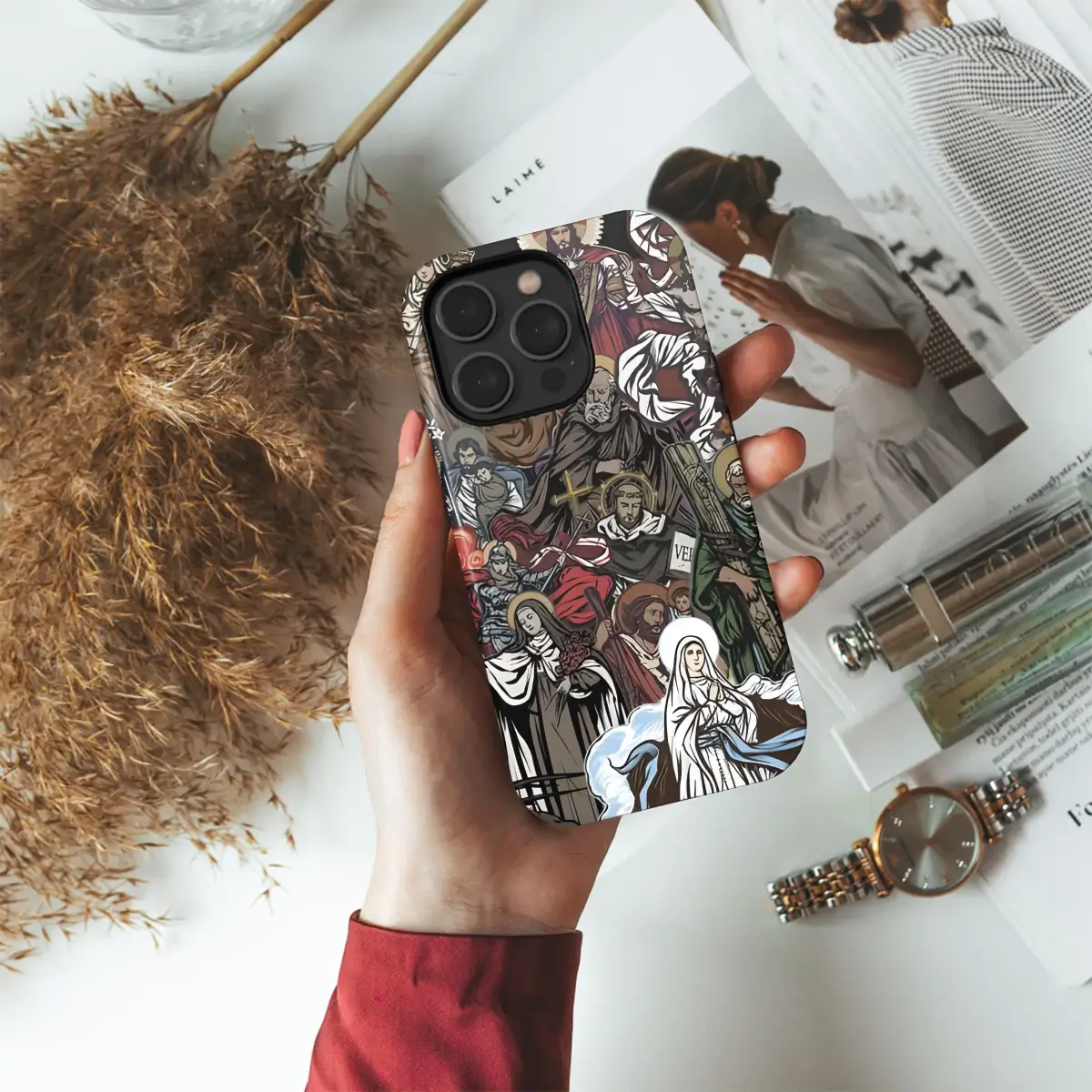 Carry your faith with you! This unique phone case features a collective art design of beloved Catholic Saints. Available for iPhone, Samsung, and Pixel models.