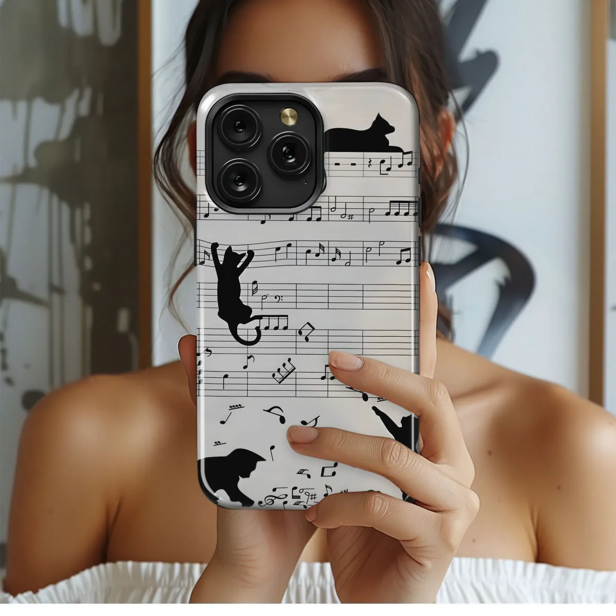 Purrfect harmony for your phone! This stylish case features adorable cats and musical notes. Protect your iPhone, Samsung, or Pixel with a touch of melody.