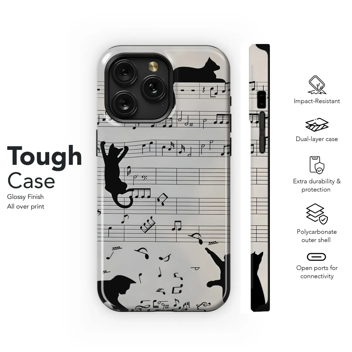 Purrfect harmony for your phone! This stylish case features adorable cats and musical notes. Protect your iPhone, Samsung, or Pixel with a touch of melody.