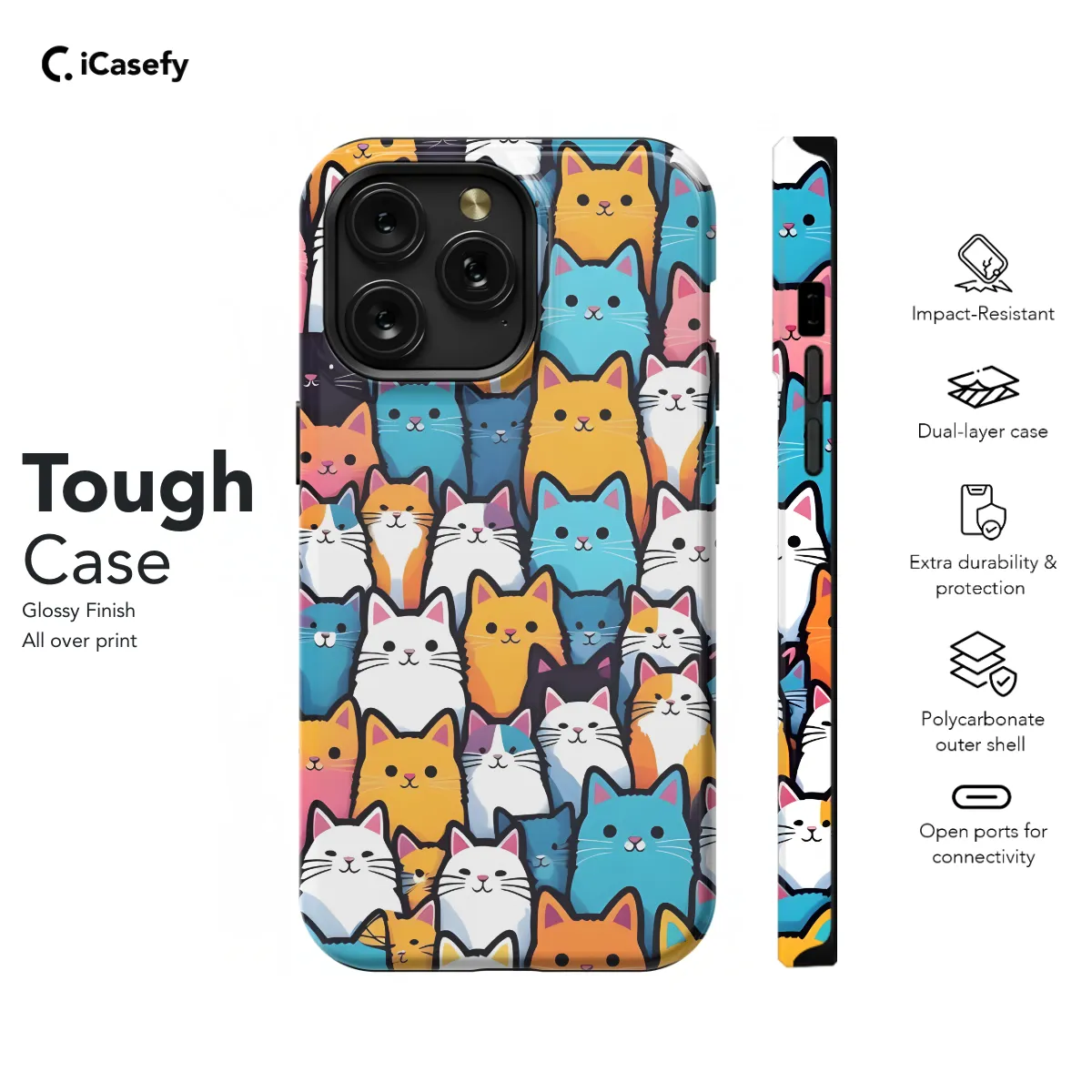 Protect your phone from scratches and cracks with our adorable Cat Phone Case. Featuring a variety of cute and stylish cat designs, this case is perfect for any cat lover. Compatible with iPhone, Samsung, Pixel, and most other popular smartphone models, this case is both stylish and functional. The slim profile won't add bulk to your phone, and the precise cutouts ensure easy access to all buttons and ports.