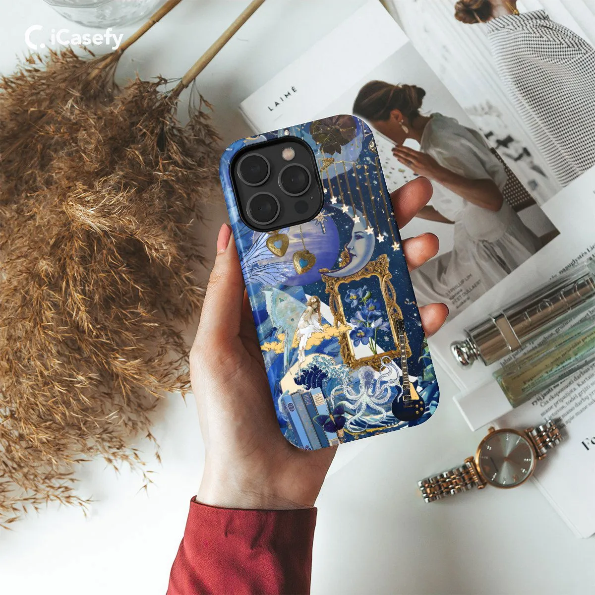 Illuminate your device with the celestial wonders of the cosmos with this captivating phone case featuring a collage of blue stars. Inspired by the mesmerizing beauty of the night sky, this design invites you to connect with the infinite expanse of the universe. Carry a touch of celestial magic with you wherever you go and let your device become a portal to the enchanting realms of the cosmos with this captivating accessory.