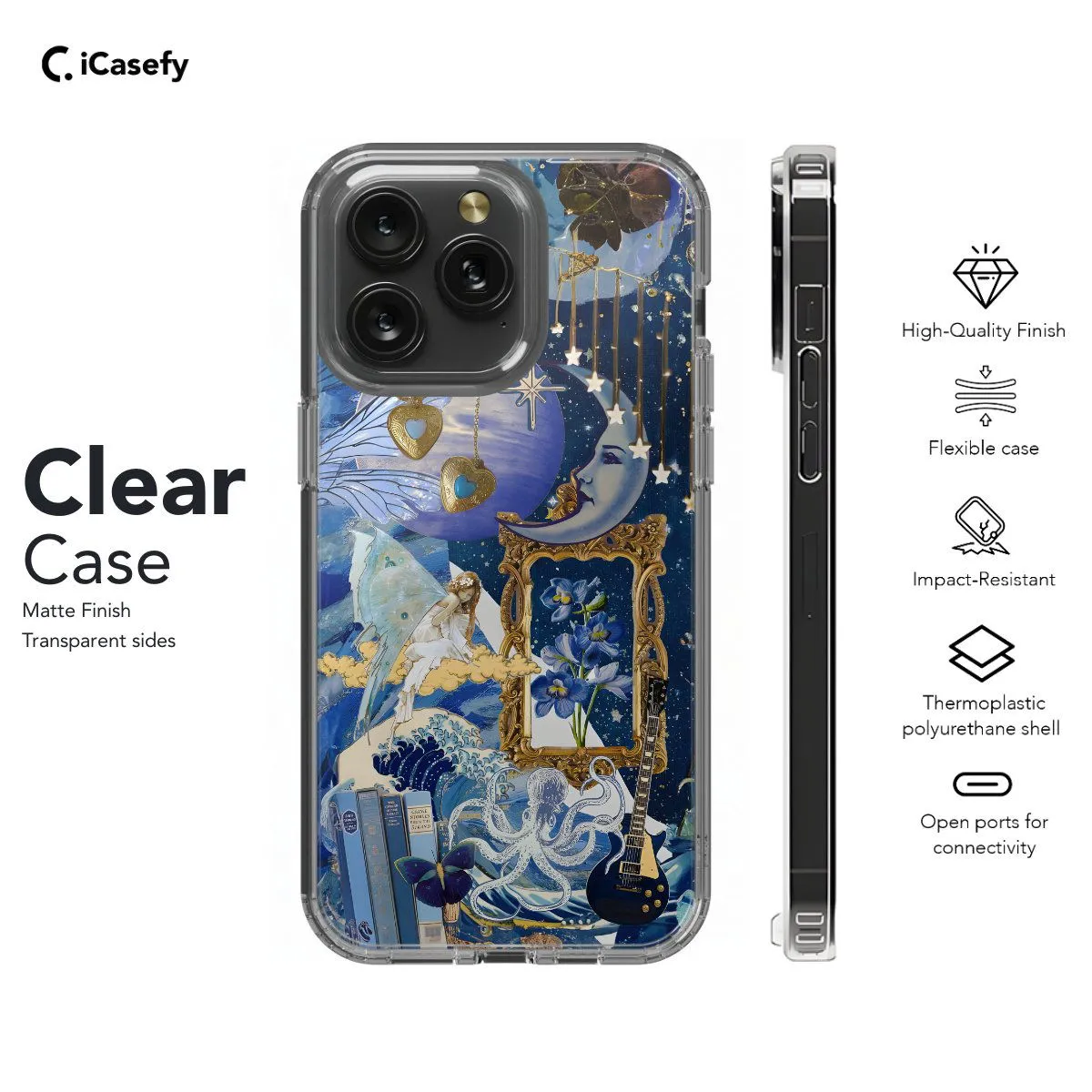 Illuminate your device with the celestial wonders of the cosmos with this captivating phone case featuring a collage of blue stars. Inspired by the mesmerizing beauty of the night sky, this design invites you to connect with the infinite expanse of the universe. Carry a touch of celestial magic with you wherever you go and let your device become a portal to the enchanting realms of the cosmos with this captivating accessory.