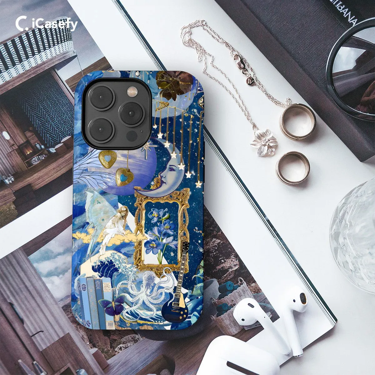 Illuminate your device with the celestial wonders of the cosmos with this captivating phone case featuring a collage of blue stars. Inspired by the mesmerizing beauty of the night sky, this design invites you to connect with the infinite expanse of the universe. Carry a touch of celestial magic with you wherever you go and let your device become a portal to the enchanting realms of the cosmos with this captivating accessory.