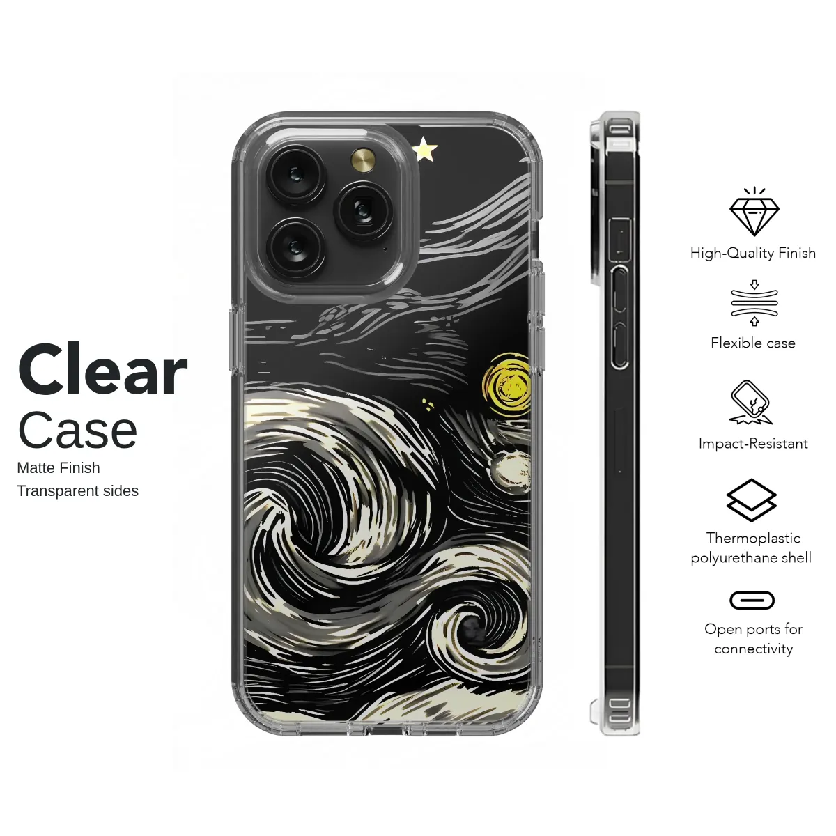 Carry a masterpiece in the palm of your hand and wrap your most essential companion in the swirling, dreamlike energy of the cosmos. Inspired by Van Gogh's iconic vision, this design reimagines the famous Starry Night with the bold, textural feel of a classic woodcut print. Luminous golden stars and a glowing moon burst from an inky black sky, while expressive, hand-carved-style currents of silver-grey clouds dance with dramatic, celestial motion. Below the vibrant heavens, a quiet village sleeps, grounding the ethereal scene with a touch of peaceful, earthly charm. This artistic accessory is a perfect statement piece for the art history lover, the romantic dreamer, or anyone with a dark academia or witchy soul who finds magic in the midnight hour. It’s more than just a beautiful image; it's a pocketful of starlight, a unique and thoughtful gift that transforms an everyday object into a conversation-starting piece of wearable art. Let your personal style shine as brightly as the constellations and carry a touch of timeless, expressive beauty with you wherever you wander.