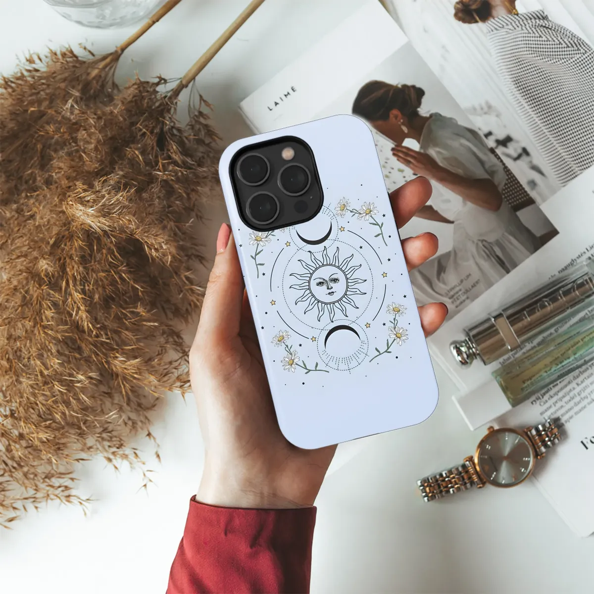 Adorn your device with this celestial design, featuring a sun and moon embraced by delicate daisies. The minimalist aesthetic combines celestial charm with floral grace, creating a calming and stylish accessory. This enchanting artwork is perfect for those who appreciate subtle details and a touch of bohemian elegance. The pastel blue background adds a soft, dreamy feel, making it a beautiful and unique addition to your personal style. High-quality printing ensures vibrant colors and sharp details that will last. This design is a perfect gift for yourself or a friend who loves astrology, nature, and unique artistic expression. The intricate sun, crescent moons, and charming daisies are beautifully arranged in a balanced, eye-catching composition, transforming your everyday device into a work of art. Express your individuality with this ethereal and sophisticated design; a perfect blend of cosmic wonder and floral beauty. Elevate your style with this uniquely crafted piece, certain to be a conversation starter. #celestial #sunandmoon #daisies #floral #minimalist #boho #pastel #astrology #unique #art #design #pretty #aesthetic #cute #gift.