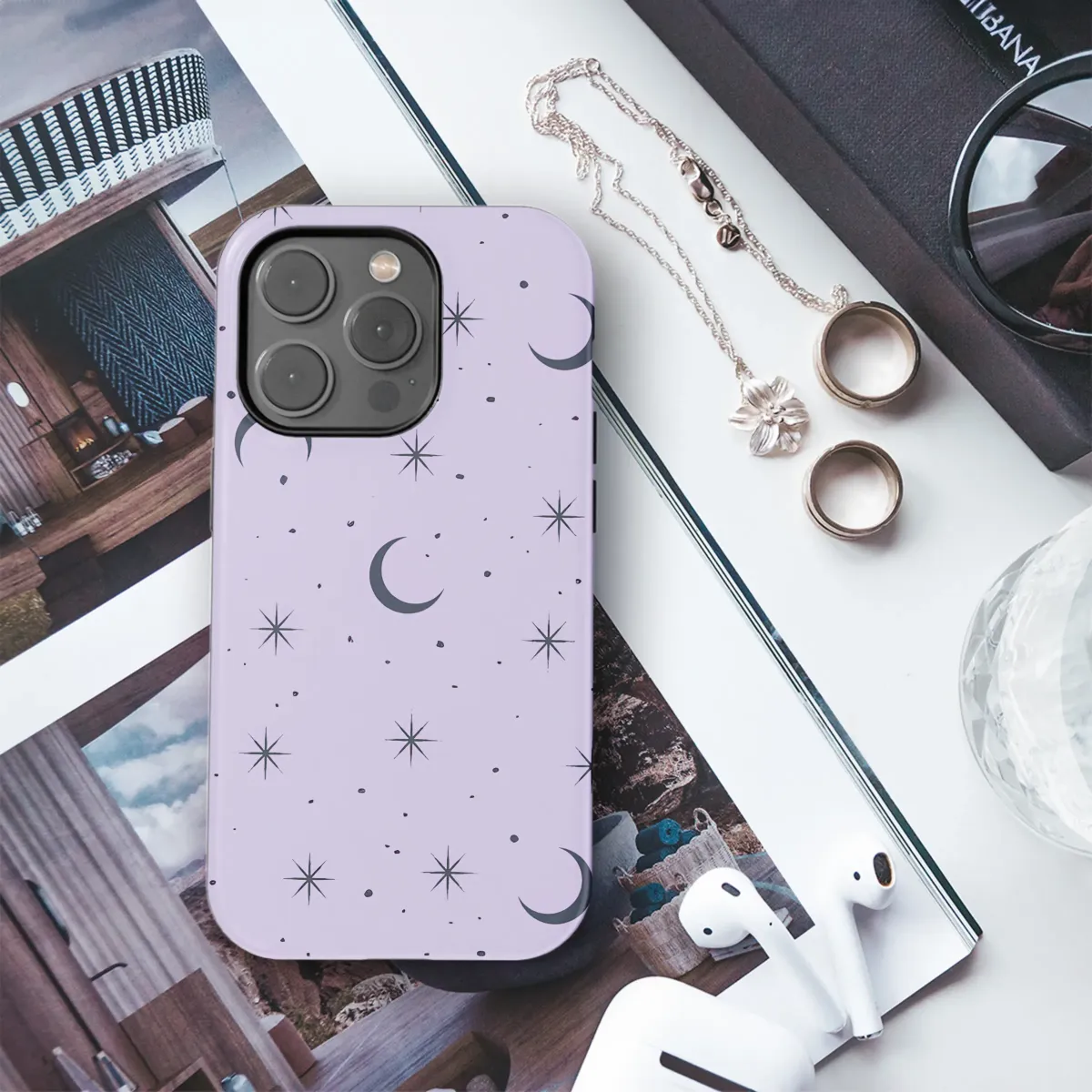 Wrap your most essential companion in the serene magic of a twilight sky with this enchanting celestial design. Imagine a dreamy field of soft lavender, a calming pastel purple canvas where delicate crescent moons and twinkling starbursts dance in a cosmic ballet. Each dark, inky moon and eight-pointed star is scattered like captured wishes across a sprinkle of distant stardust, creating a whimsical yet sophisticated pattern that speaks to the soul. This isn't just a pretty design; it's a personal talisman, a pocketful of night-sky serenity for the modern mystic, the astrology lover, or anyone who finds peace in the cosmos. Perfect as a witchy gift or a special treat for yourself, this aesthetic accessory transforms your daily tech into a piece of magical art. Let this beautiful celestial guardian protect your portal to the world, serving as a constant, gentle reminder of the vast, mystical universe you carry with you every single day. Embrace the cosmic energy and add a touch of ethereal elegance to your everyday adventures.