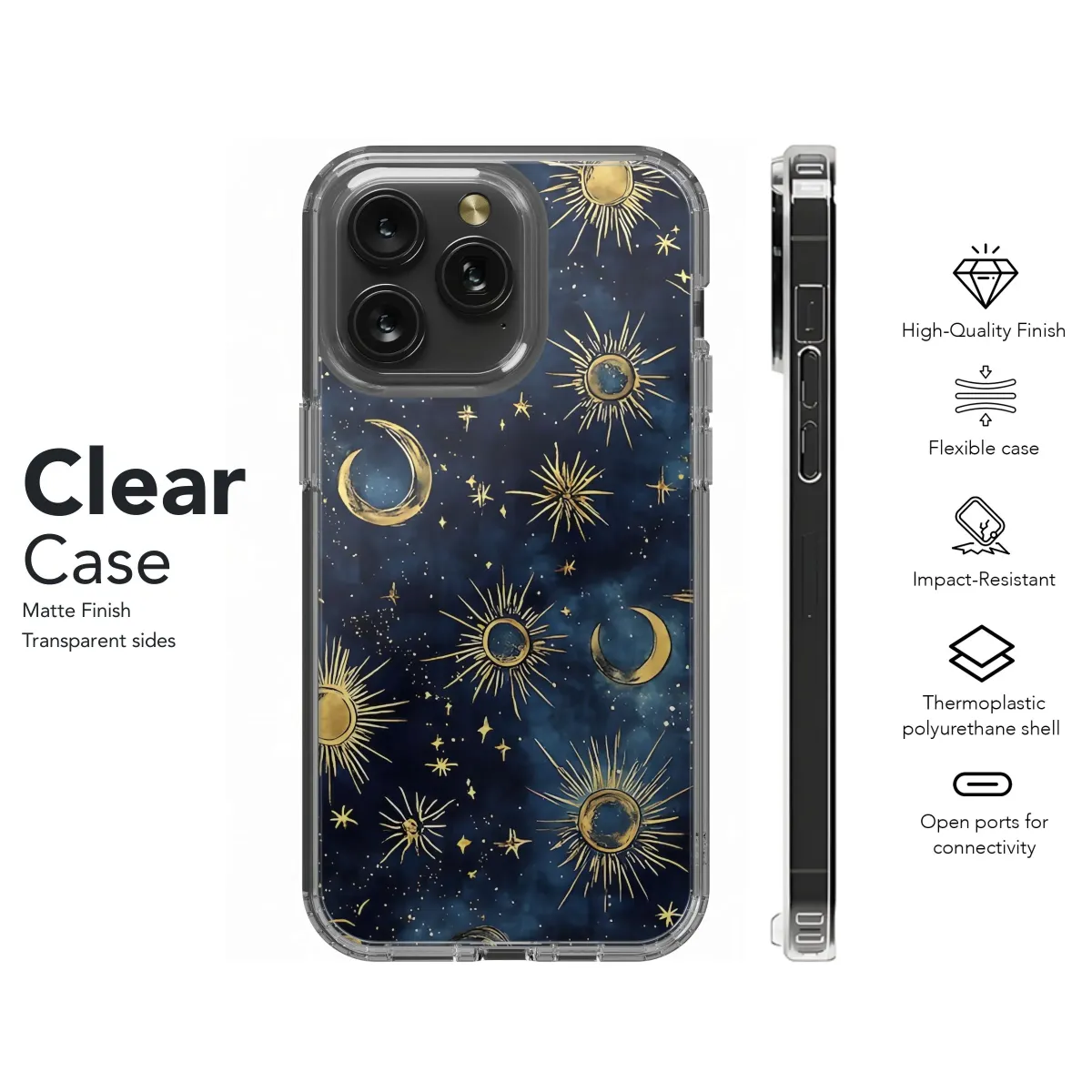 Adorn your device with this celestial wonder! Featuring a mesmerizing design of radiant golden suns, crescent moons, and twinkling stars scattered across a deep indigo cosmic backdrop, this artwork evokes a sense of magic and wonder. The rich, contrasting colors and intricate details create a captivating visual experience, perfect for those who are drawn to astrology, astronomy, and the mysteries of the universe. Express your unique style with this eye-catching design, ideal for stargazers, dreamers, and anyone who appreciates beautiful, artistic creations. Let the cosmos inspire you every day with this stunning piece that combines modern aesthetics with timeless celestial motifs. Embrace your inner celestial being with this unique and stylish celestial design. Get your astrology moon stars artwork now, it also is a perfect astrology lovers gift.