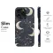 Immerse yourself in the ethereal beauty of the night with this captivating celestial botanical pattern. A deep, dark background, reminiscent of the midnight sky on a clear night, serves as the perfect canvas for a truly magical illustration. Scattered across this cosmic expanse are luminous golden crescent moons, their forms rendered in a rich, metallic-effect hue, each subtly adorned with delicate floral elements that seem to bloom directly from the lunar surface itself, blending celestial and earthly beauty in a stunning visual display. Intertwining gracefully with these shining celestial bodies are intricate golden branches and winding stems, featuring finely detailed leaves and whimsical flower buds that trail elegantly across the design, adding an organic, natural touch to the starry panorama. Tiny twinkling stars are sprinkled throughout the dark void, alongside the faint yet discernible outlines of classical constellations, visually connecting the earthly flora with the vastness and mystery of the cosmos above. This enchanting artwork seamlessly blends the timeless wonder of the night sky with the intricate, grounded beauty of nature, creating a captivating aesthetic perfect for those who cherish celestial themes, gothic elegance, witchy vibes, spiritual connection, or simply a touch of mystical bohemian charm in their everyday lives. It evokes a profound sense of wonder, conjures images of midnight gardens and cosmic dreams, and promotes a feeling of connection to both the universe above and the intricate life below. The rich contrast of the radiant golden elements against the deep, dark backdrop provides a sophisticated and visually striking presentation, making this pattern a truly unique artistic statement. This design offers a piece of portable art, bringing a touch of cosmic harmony, natural grace, and mystical allure into your daily existence, perfectly reflecting a love for astrology, fantasy, dark romance, and the timeless magic found in the heavens and on earth. It's a stunning illustration designed not just to be seen, but to inspire and enchant wherever you go.