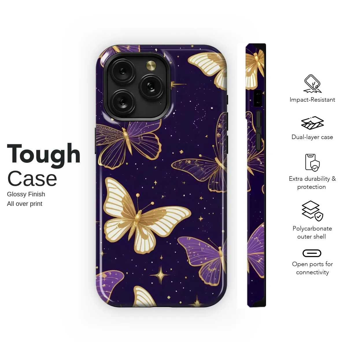 Wrap your world in the magic of a celestial midnight with this enchanting artwork. Picture a deep, velvety indigo sky, where a galaxy of tiny stars and golden crescent moons shimmer like scattered diamonds. Through this cosmic dreamscape, a silent ballet of ethereal butterflies unfolds. Their delicate wings, some crafted from pure, polished gold and others painted in the richest shade of royal amethyst, are traced with intricate gilded lines that catch the light with every movement. They flutter and float amongst twinkling starbursts, their flight a whimsical dance across the heavens. This design captures a fleeting moment of pure fantasy, blending dark academia elegance with a touch of mystical, witchy charm. It’s a perfect accessory for the modern romantic, the stargazer, and anyone who carries a little magic in their heart. Let this celestial butterfly pattern be a daily reminder of the beauty that exists in the universe and in your dreams. It's more than just an accessory; it's a portable piece of art that makes a thoughtful and unique gift for a loved one, or a beautiful way to express your own enchanting style.