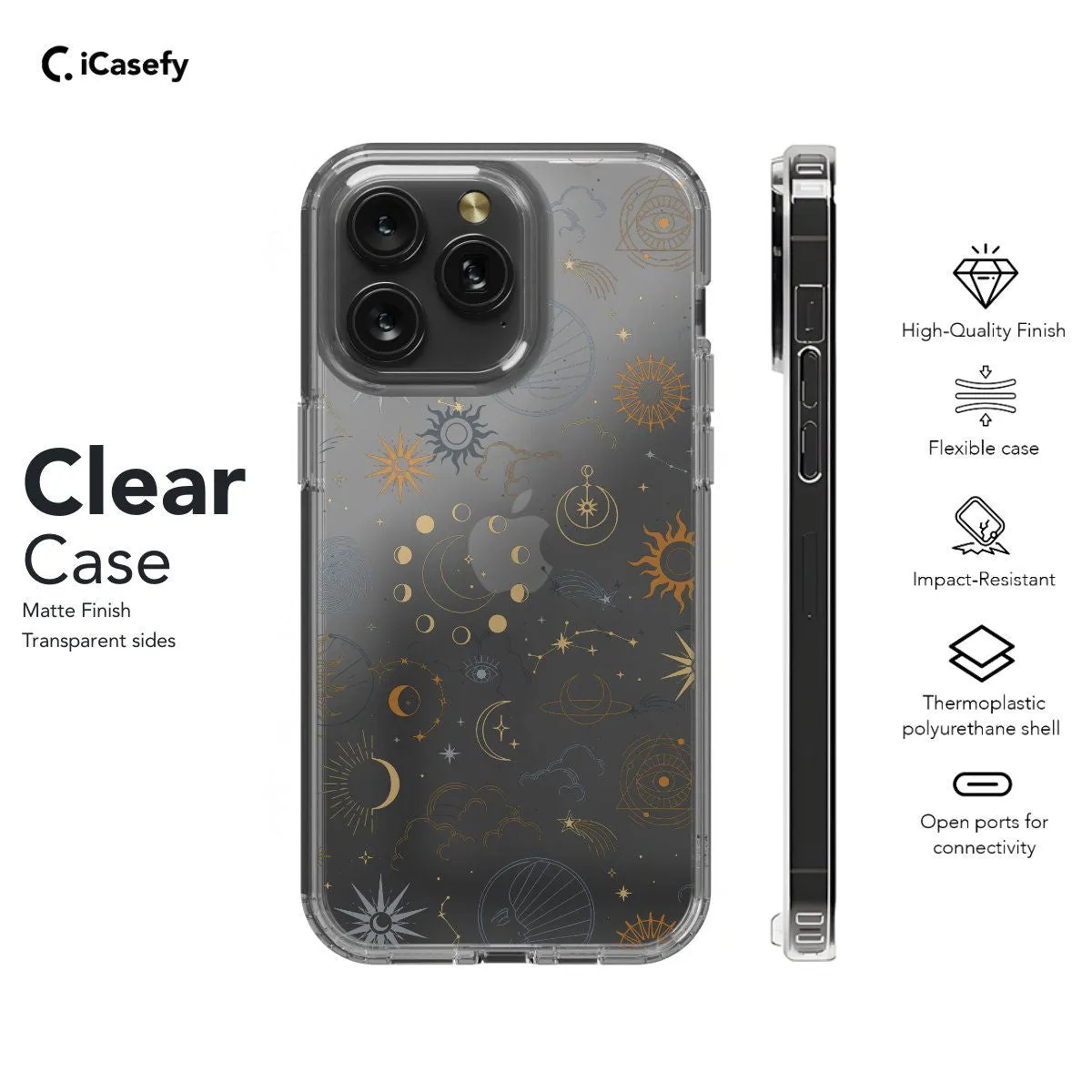 Embrace the celestial beauty of the cosmos with this enchanting phone case featuring a celestial moon and stars intertwined with astrological symbols. This accessory invites contemplation of the mysteries of the universe and the ancient wisdom of astrology. Carry a touch of cosmic inspiration with you wherever you go, letting your device become a portal to the wonders of the night sky with this mesmerizing and thought-provoking case.