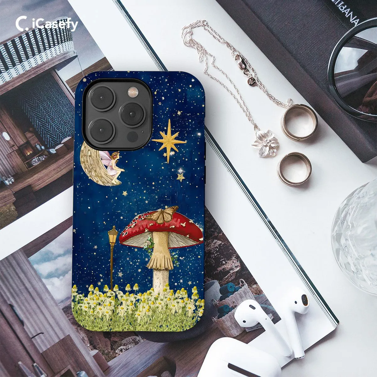 Indulge in whimsical elegance with our Celestial Mushroom Fairy phone case. Adorned with enchanting fairies amidst celestial mushroom landscapes, this design embodies magical charm. Crafted for both style and protection, it features precise cutouts for easy access to ports. Carry the enchantment of celestial mushrooms and fairies with you.