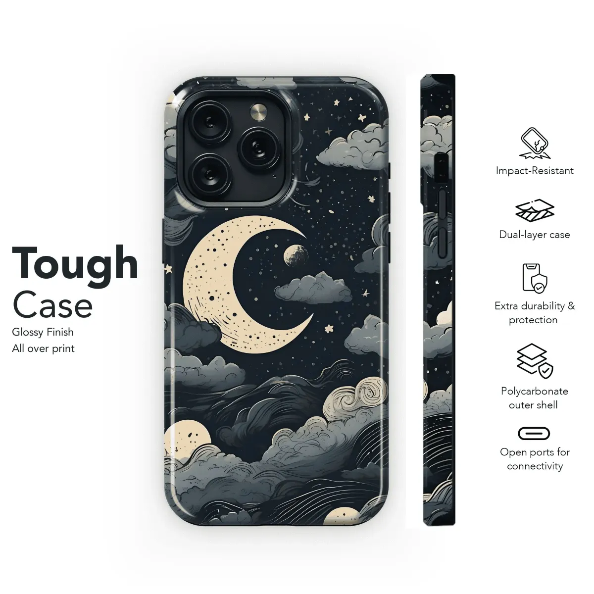 Drift into dreamland with our Celestial Night Clouds phone case. Stunning ethereal clouds against a midnight sky protect your iPhone, Samsung, or Pixel. Embrace the beauty of the night.