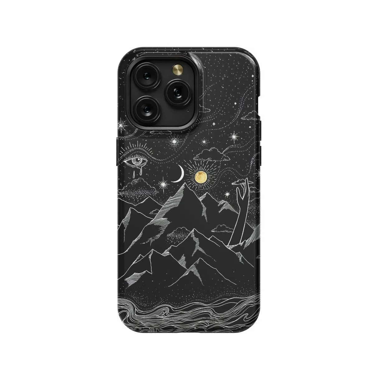 Immerse yourself in the celestial wonders of the night sky with this captivating phone case featuring a serene scene of the moon, mountains, and drifting clouds. Inspired by the tranquil beauty of the cosmos, this case invites you to embrace the mystique of the night and the majesty of nature's grandeur. Carry the enchantment of the celestial realm with you wherever you go and let your device become a portal to dreamy celestial landscapes.