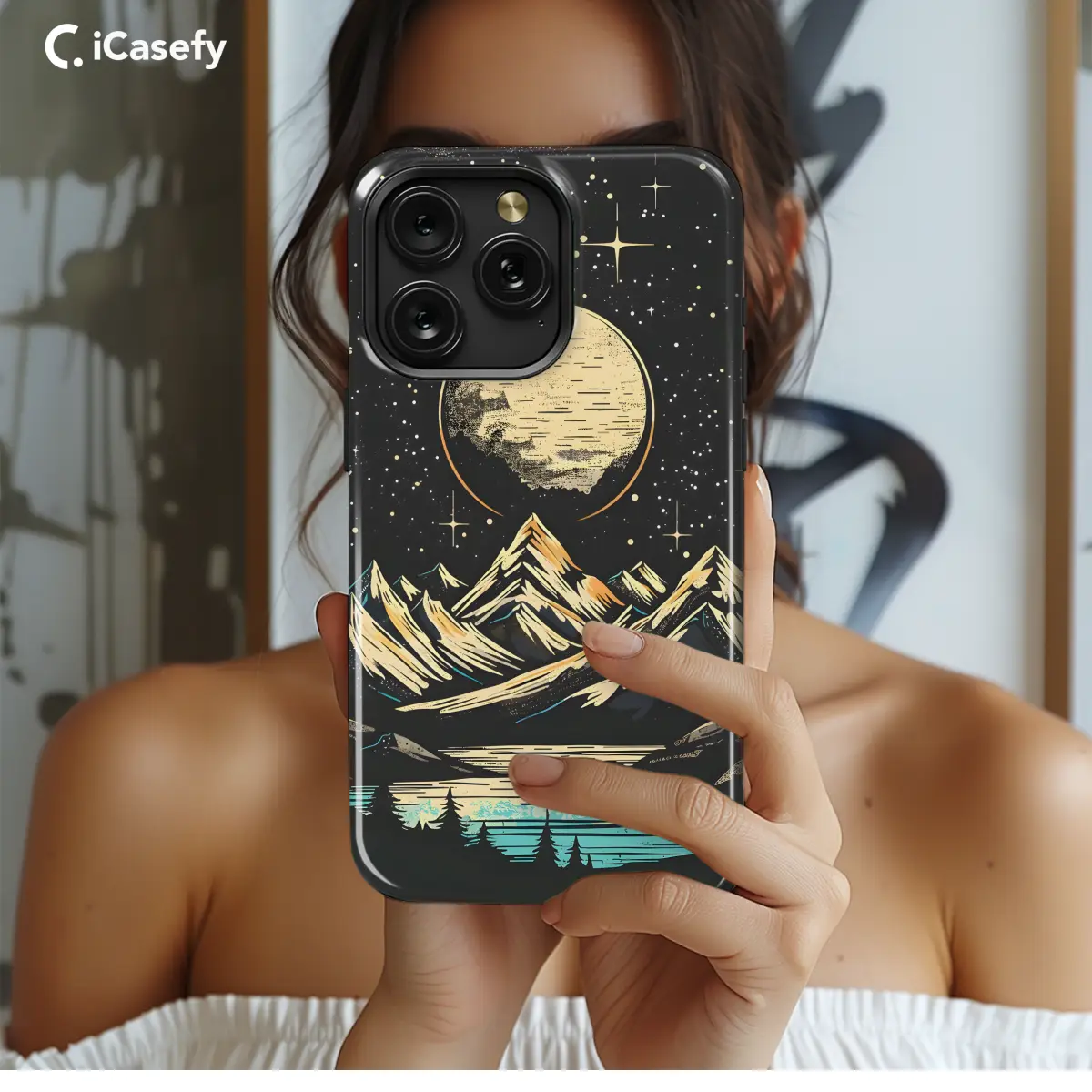 Escape into the ethereal embrace of celestial wonders with our captivating phone case. Embark on an enchanting journey through a night-soaked forest, where the moon's gentle glow illuminates a tranquil river meandering towards a distant mountain range. The intricate landscape design, printed in vibrant hues, offers a captivating window to the artistry of nature. Lose yourself in its mesmerizing charm and let the serene symphony of the night serenade your senses every time you reach for your phone.