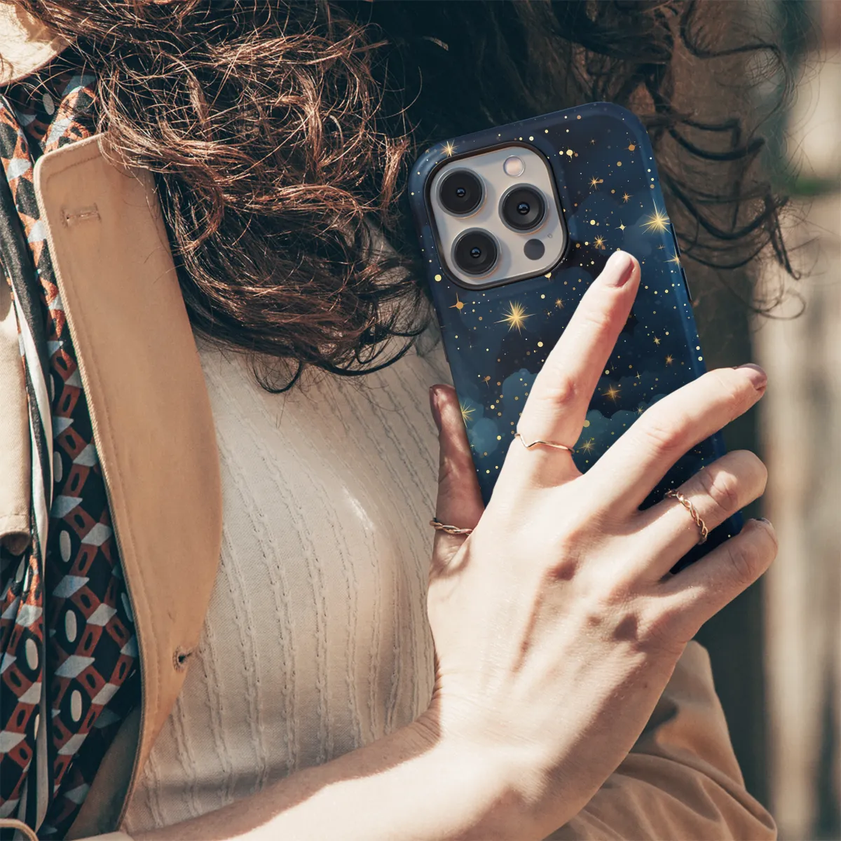 Adorned with an enchanting celestial night sky, this phone case transforms your device into a cosmic canvas. Featuring intricate constellations, shimmering stars, and a resplendent moon, this case will let you carry the wonders of the universe wherever you go. Its sleek design and durable construction provide both style and protection, ensuring your phone remains safe while embracing the celestial tapestry.