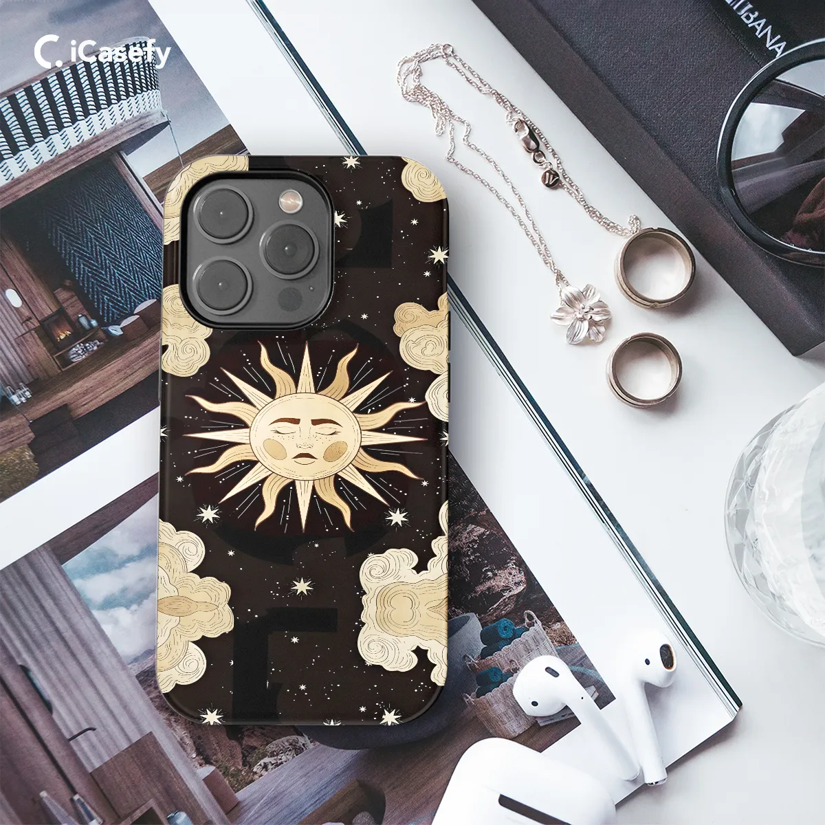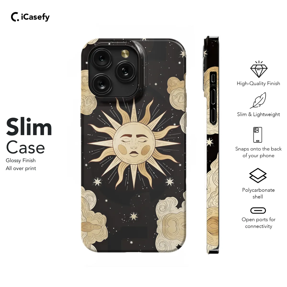 Unveil the celestial glow within your grasp with our Celestial Night Sun Stars Phone Case. Emblazoned with a resplendent tapestry of shimmering stars and a celestial sun, this case transforms your phone into a cosmic canvas. Its protective design safeguards against daily wear and tear, ensuring your device remains as brilliant as the night sky above.