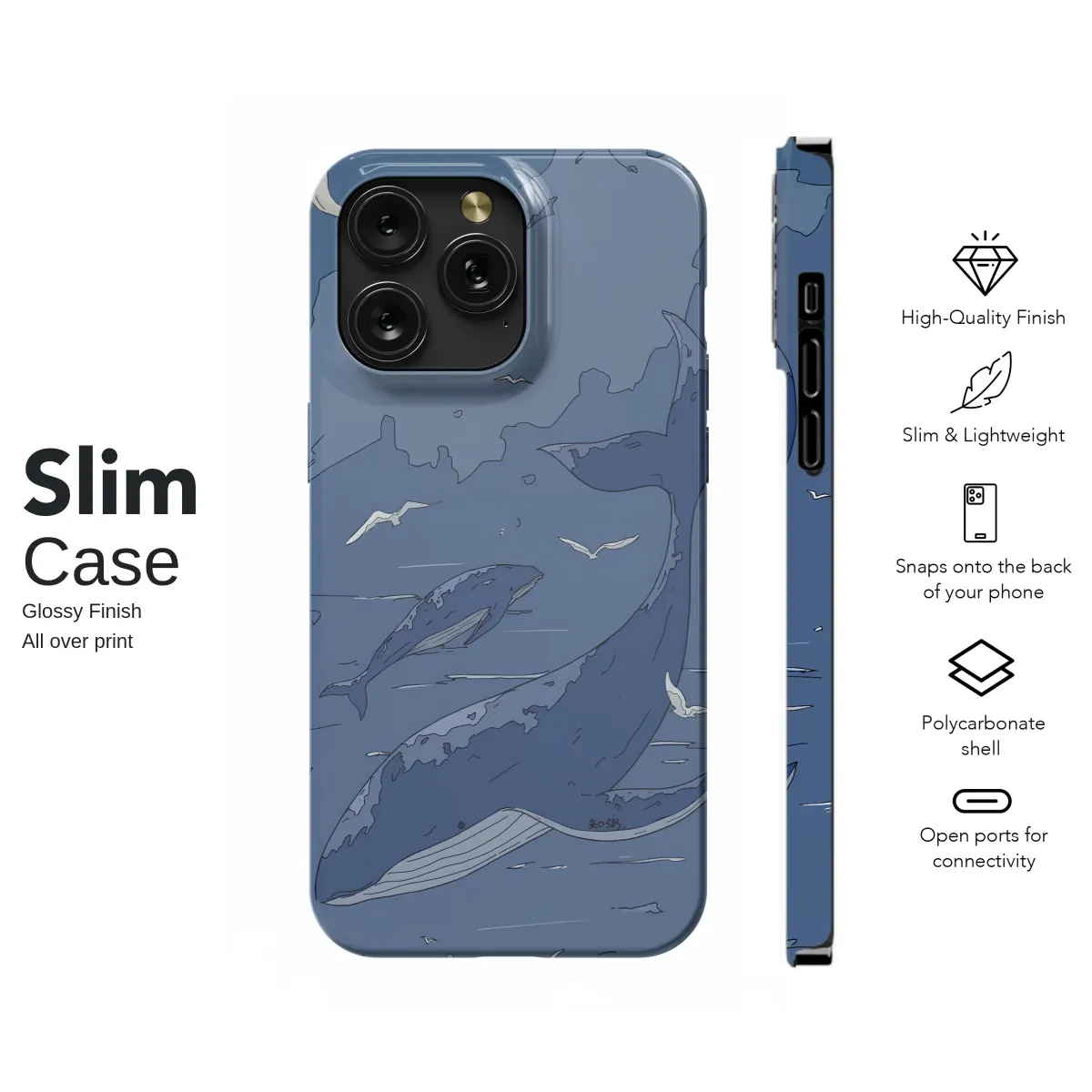 Dive into a world where the ocean meets the midnight sky, a realm of serene dreams and gentle giants. Imagine majestic whales soaring not through water, but through a tranquil sea of clouds, guided by the soft, ethereal glow of a sliver crescent moon. This captivating illustration captures a moment of pure, quiet magic, depicting a mother whale and her calf on their celestial migration. Their serene journey is painted in a symphony of deep, calming blues, from twilight indigo to soft cerulean, evoking a profound sense of peace. Delicate white birds dance in their wake, their wings catching the faint lunar light, adding a touch of freedom to the enchanting, dreamlike scene. With its clean lines and subtle texture, the artwork channels a minimalist aesthetic with a nod to classic Japanese illustration, offering a visual escape from the everyday hustle. This design is more than just an image; it's a portal to a mystical world, a perfect artistic gift for the ocean lover, the stargazer, the dreamer, or anyone who finds solace in the vast, beautiful mysteries of nature. Let this piece of portable art wrap your favorite accessory in tranquility, carrying a fragment of the cosmic ocean with you wherever you go—a constant, beautiful reminder of the magic that exists just beyond the veil of reality.
