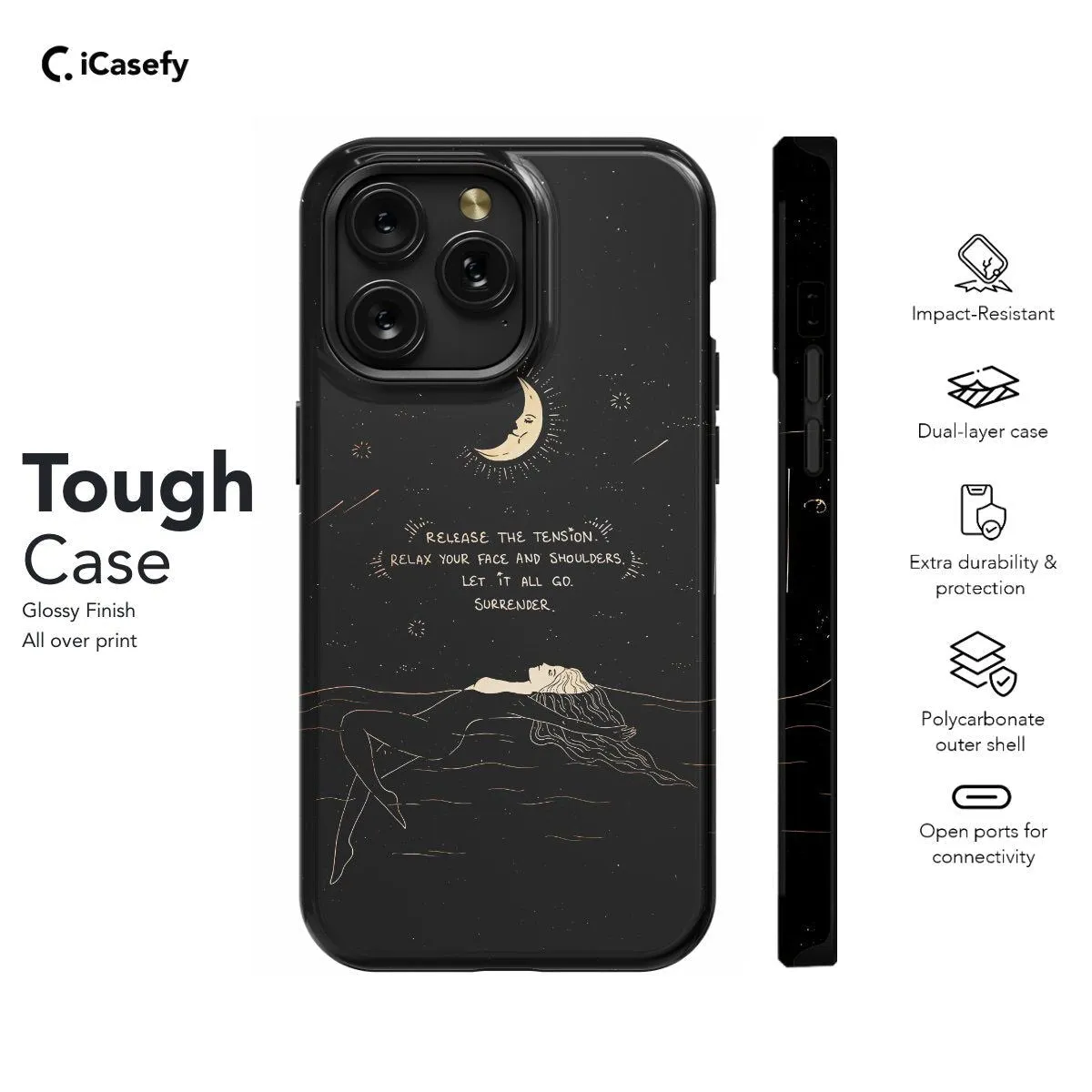 Illuminate your device with the celestial wonders of the universe with this captivating phone case adorned with a celestial quote alongside moons and stars. Embrace the timeless beauty and mystique of the cosmos as you carry a touch of celestial magic with you wherever you go. Let your device become a beacon of inspiration and wonder with this enchanting accessory that invites you to reach for the stars and follow the guiding light of the moon.