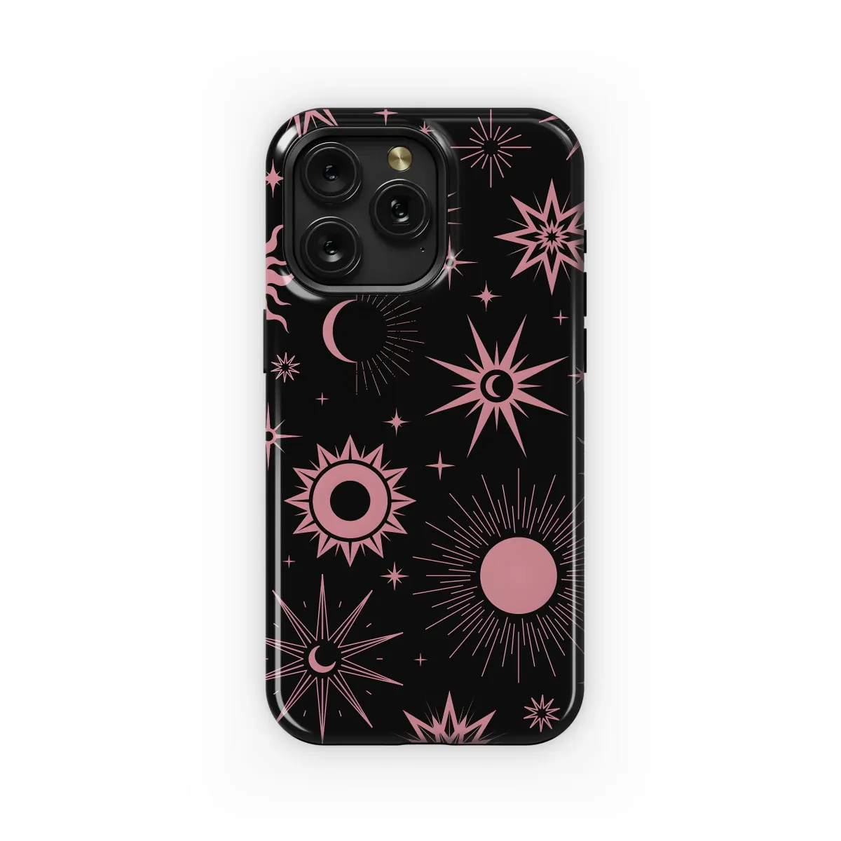Adorn your most essential daily companion with the mystical allure of the cosmos with this stunning celestial accessory. Set against a deep, infinite black backdrop, an intricate pattern of dusty rose suns, moons, and stars creates a mesmerizing celestial dance. This design is rich with esoteric symbolism, featuring radiant sunbursts, serene crescent moons, and twinkling star formations that evoke a sense of ancient magic and astrological wonder. It's the perfect statement piece for the modern witch, the spiritual soul, or anyone who finds beauty in the night sky and the universe's mysteries. This stylish and durable shell not only adds a touch of bohemian, witchy elegance to your look but also provides a vital layer of safeguarding for your technology, keeping it safe from the rigors of your daily adventures. Elevate your personal style and express your inner magic with this unique piece that feels like a personal talisman. It makes a wonderfully unique and thoughtful gift for any astrology lover, spiritual seeker, or fan of dark academia and gothic aesthetics. Let this sacred geometry and cosmic art be a constant reminder of the magic that surrounds us, transforming your everyday gadget into a beautiful work of art that truly reflects your spirit. Carry the universe in your hand and let your personal style shine as brightly as the constellations.