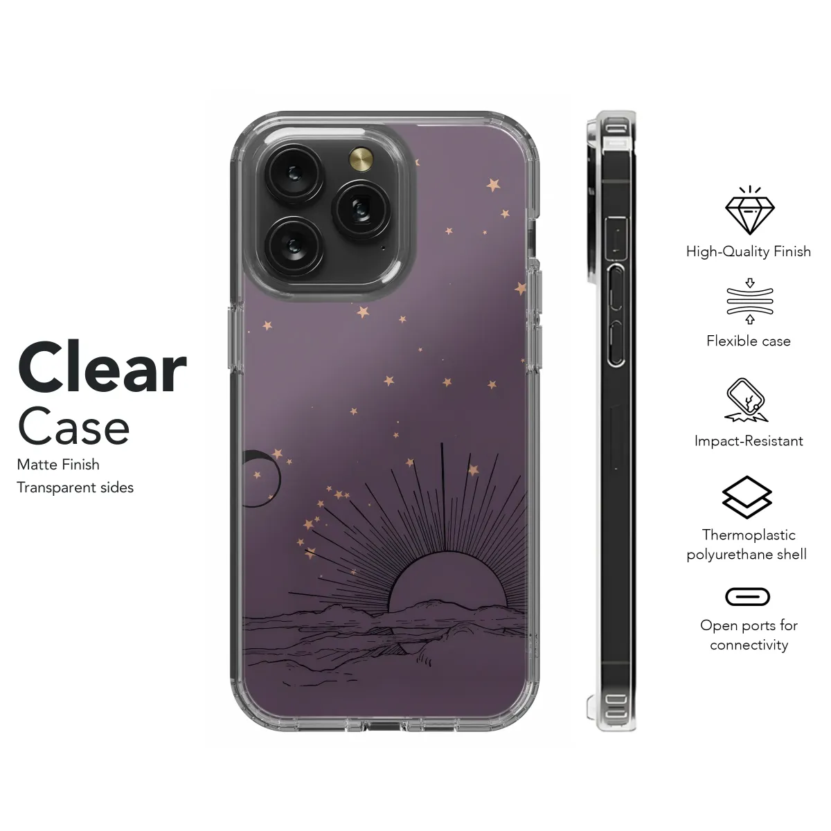 Embrace celestial beauty with this captivating design, featuring a crescent moon, a radiant sun, and a scattering of stars against a dusky purple backdrop. The minimalist line art style creates a serene and sophisticated aesthetic, perfect for adding a touch of cosmic elegance to your everyday life. This enchanting print is expertly crafted for vibrant and long-lasting color, ensuring your new accessory remains a stunning reflection of your unique style. The design’s calming celestial theme evokes a sense of peace and wonder, making it a thoughtful gift for yourself or a loved one who appreciates artistic beauty and the magic of the night sky. Its versatile style complements a variety of personal aesthetics, from boho chic to modern minimalist. Bring the tranquility of the cosmos into your world with this timeless and stylish accessory. This print boasts high-resolution quality for sharp details and rich color saturation. Order yours today and let the stars shine brightly!