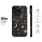 Carry the enchanting cosmos in the palm of your hand with this stunning celestial accessory, designed for those who dream with their eyes open. This intricate artwork captures a magical, hand-drawn starry night, a whimsical universe sprawling across a deep, velvety black canvas. Luminous golden planets, reminiscent of a serene Saturn, drift gracefully alongside shimmering, silvery crescent moons and a radiant, powerfully stylized sun that anchors the cosmic scene with its warm energy. Delicate, sketchy white clouds float dreamily among a beautiful scatter of twinkling stars, dazzling starbursts, and fleeting shooting stars, evoking a profound sense of wonder and infinite possibility. This design transforms your most essential daily companion into a personal talisman, a piece of wearable art that speaks to your soul and protects your portal to the world. The unique boho, doodle-art style lends an authentic, personal touch, making it a standout piece for anyone with a mystical or witchy aesthetic. Perfect for lovers of astrology, celestial events, and the timeless, mystical dance of the sun and moon, this beautiful shield is more than just a surface; it's a statement. It’s an ideal, thoughtful gift for her, a best friend, or any stargazer looking to carry a slice of the magical midnight sky with them on their daily journey. Let this beautiful celestial pattern guard your connection to the world while reflecting your inner universe.