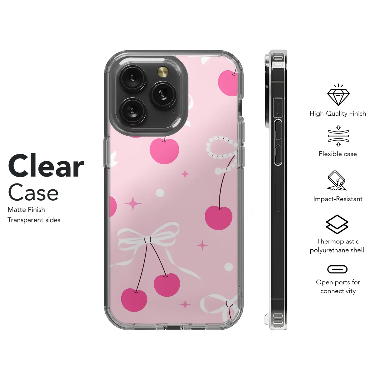 Protect your phone with style with our adorable Cherry Bow Seamless Pattern Phone Case! This ultra-thin case is made from durable, shock-absorbing TPU material to safeguard your phone from bumps and drops. The vibrant cherry bow print adds a touch of sweetness to your device, while the seamless pattern ensures a sleek and professional look. Compatible with iPhone, Samsung, and Pixel phones, this case fits snugly and provides easy access to all buttons and ports. Keep your phone safe and stylish with our Cherry Bow Seamless Pattern Phone Case today!