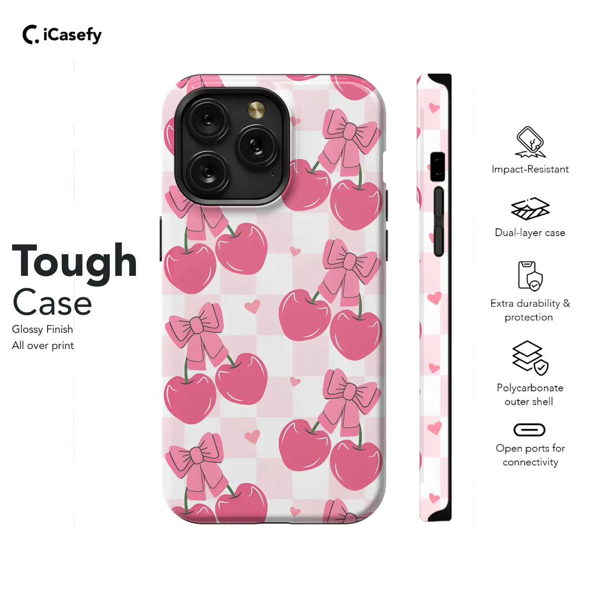 Embrace the sweet and playful vibe with our Cherry Checkered Coquette Phone Case. This enchanting case features a vibrant cherry red checkered pattern with a hint of feminine charm. Its durable construction ensures your phone stays protected and stylish. Whether you're rocking an iPhone, Samsung, or Pixel, this case is the perfect accessory to keep your device safe and add a touch of sweetness to your everyday style.