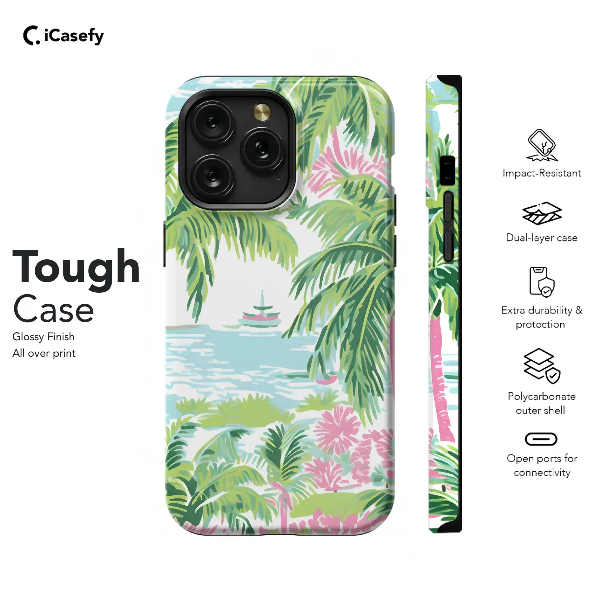 Escape to the chic coastal oasis of Palm Beach with our vibrant illustrated phone case. Featuring an exclusive watercolor design, it transports you to a world of sun-drenched shores and preppy vibes. Available for iPhone, Samsung, and Pixel models, this case not only protects your phone but also exudes a sophisticated summer style that will turn heads.