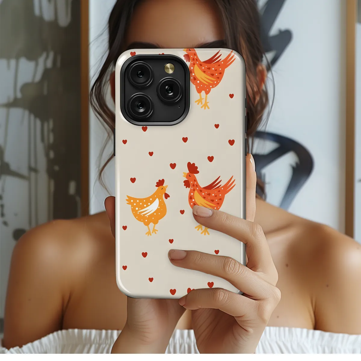 Protect your phone in style with our Chicken Love Phone Case! This adorable case features a playful chicken design that will make you smile every time you use your phone. Made from durable materials, this case will keep your phone safe from scratches, bumps, and drops. It's also compatible with a variety of iPhone, Samsung, and Pixel models, so you can find the perfect fit for your device. Order your Chicken Love Phone Case today and show your love for all things chicken!