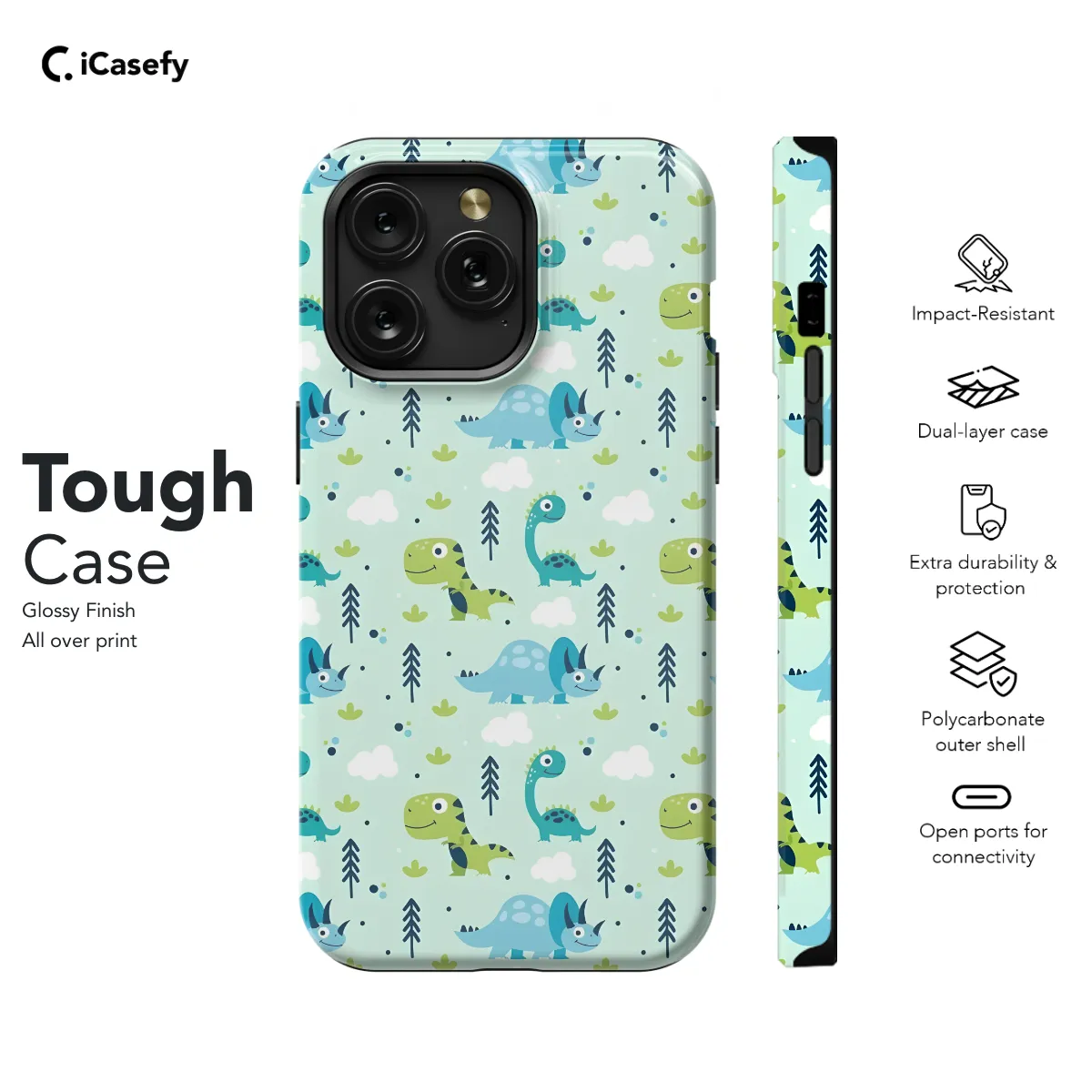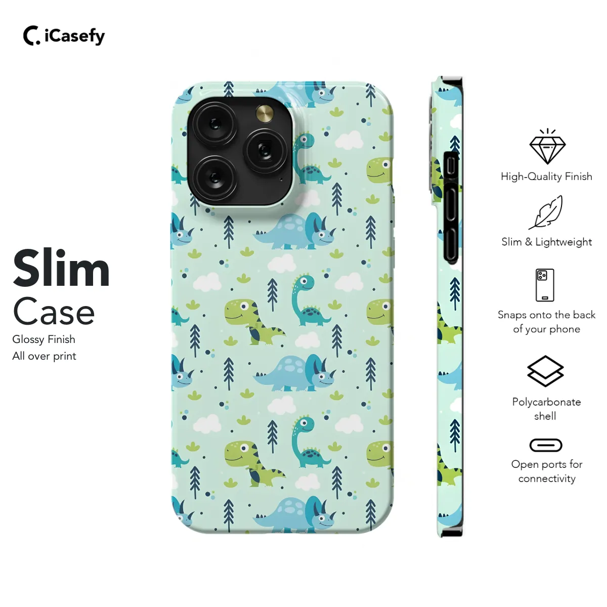 **Thrill Your Child with This ROARsome Dinosaur Phone Case!** Protect their precious device while unleashing their prehistoric imagination with this vibrant dinosaur case. Featuring an impressive collection of dinos, it's the perfect companion for any adventure-seeking kid. **Key Features:** * Fits iPhone, Samsung, Pixel, and more (select your model) * Durable materials to safeguard their phone from drops and bumps * Bold and colorful dinosaur designs that ignite creativity * Slim profile for comfortable handling * Precise cutouts for easy access to all ports and buttons Give your child the ultimate dinosaur experience with this stylish and protective phone case. Watch as their roar of delight echoes through the land!