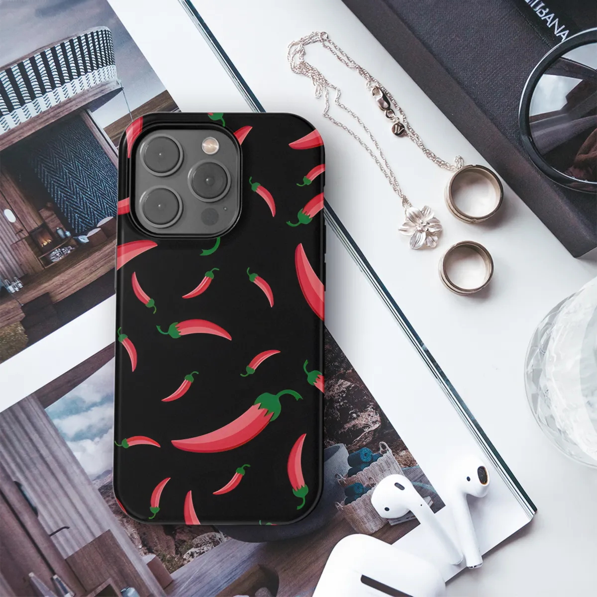 **Bold, Fiery Design:** Protect your phone in style with this eye-catching Chilli Pepper Print Phone Case. Its vibrant and unique design will make your device stand out from the crowd. **Sleek Protection:** Engineered with durable materials, this case safeguards your phone from scratches, bumps, and everyday wear and tear. **Precise Fit:** Expertly designed to perfectly fit your iPhone or Samsung Galaxy model, ensuring a snug and secure fit. **Comfortable Grip:** The ergonomic design provides a comfortable hold, preventing accidental slips. **Vibrant Colors:** The high-quality print ensures the bright and vibrant colors of the chilli pepper graphic will remain vibrant for years to come.