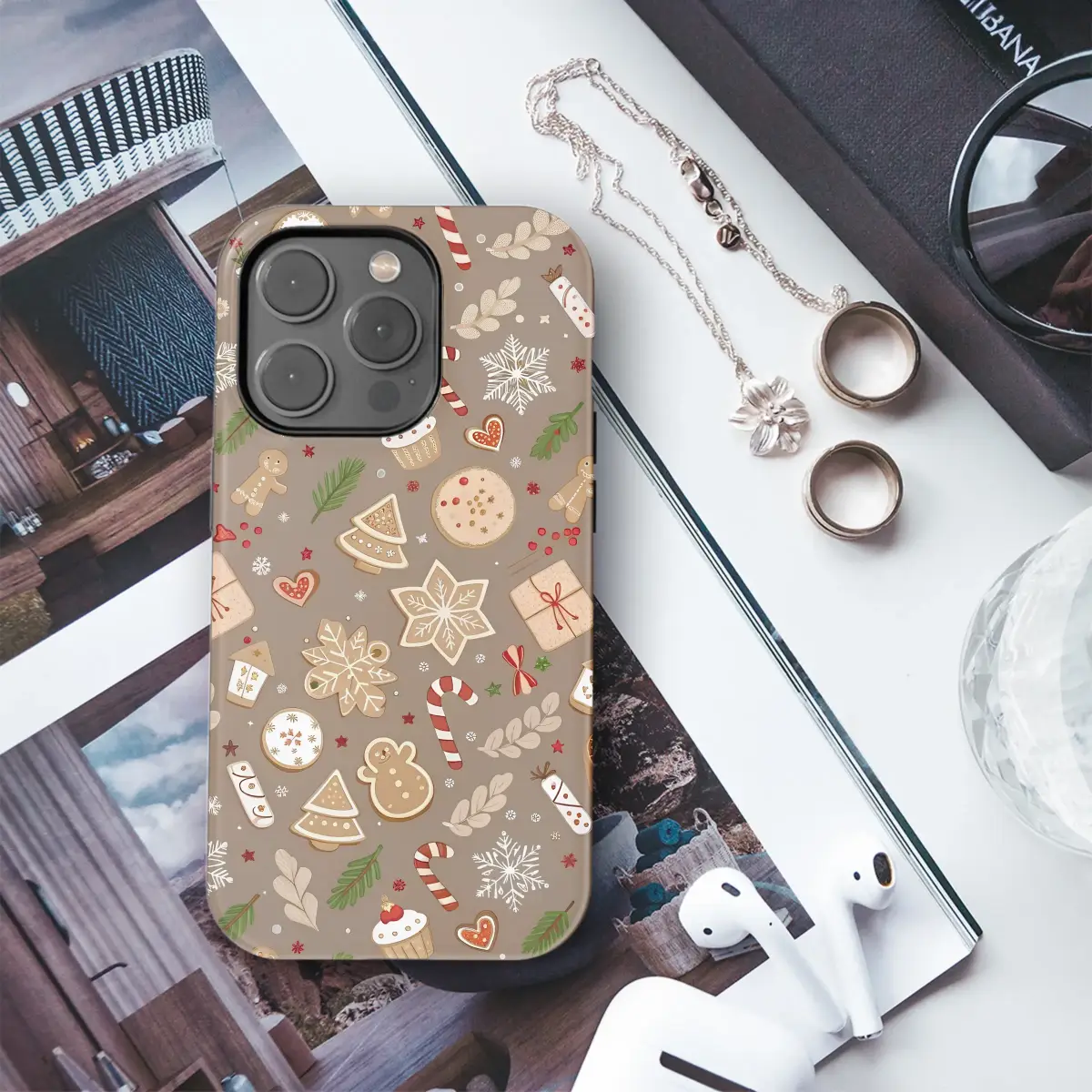 Wrap your device in the cozy spirit of the holidays with this charming Christmas baking design. This delightful pattern captures the joy of festive treats, featuring an array of intricately decorated gingerbread men, whimsical Christmas trees, sweet candy canes, and delicate snowflake cookies. Set against a warm, earthy brown background, this illustration evokes the comforting aroma of a holiday kitchen, making it a sweet and cheerful accessory for the winter season.