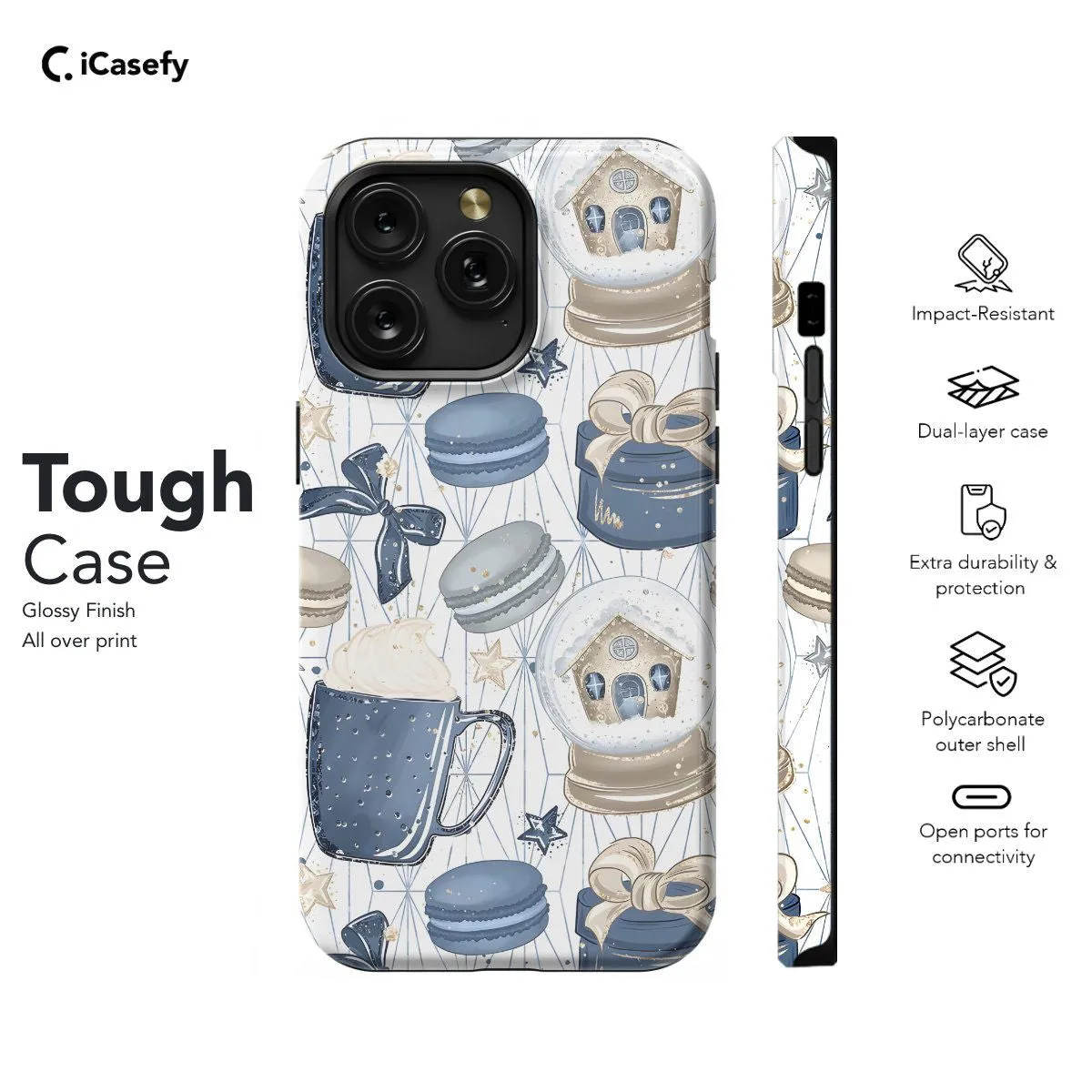 Indulge in the delights of the holiday season with this whimsical phone case featuring a festive collage of Christmas macarons, coffee, snowballs, and coquettes. With its charming and playful design, this case captures the spirit of holiday indulgence and merriment. Carry a touch of seasonal cheer with you wherever you go and let your device become a delightful reminder of the joyous festivities of Christmas with this enchanting accessory.