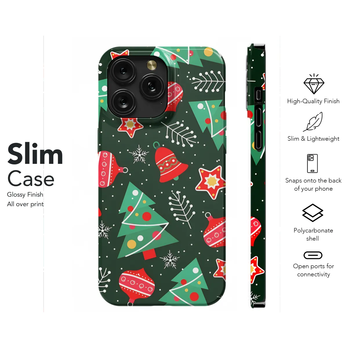 Celebrate the festive season with our enchanting Christmas Pattern Phone Case. Crafted with precision for a perfect fit on your iPhone, Samsung, or Pixel 2/6, this case showcases a vibrant holiday-themed design that will spread cheer wherever you go. Its durable construction protects your precious device from everyday bumps and scratches, while its slim profile ensures a comfortable grip. Get ready to make a style statement and bring the Christmas spirit into your daily life with our festive phone case.