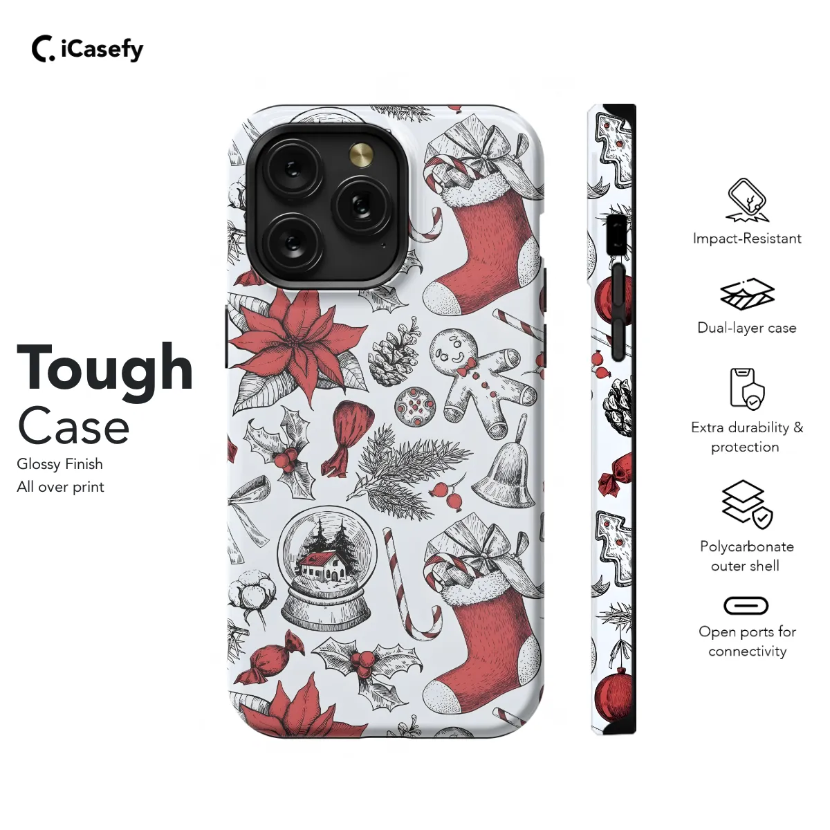 Unleash the festive cheer on your smartphone with this charming Christmas Pattern Phone Case! Designed to fit various iPhone, Samsung, and Pixel models, it will keep your device secure while spreading holiday joy. Its vibrant Christmas-themed pattern adds a touch of whimsy and warmth to your daily essentials. The durable construction ensures protection against scratches, bumps, and drops, giving you peace of mind while enjoying the holiday spirit.