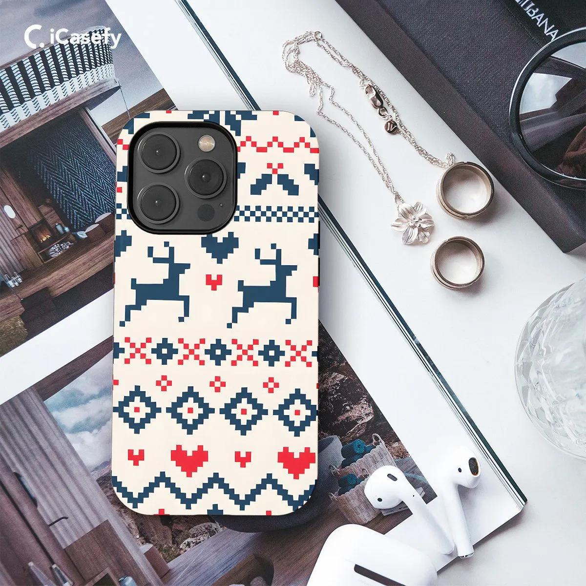 Celebrate the joy of the holiday season with this charming phone case adorned with a Christmas pattern featuring reindeer and hearts. Embracing the festive spirit and the warmth of love, this design is perfect for spreading holiday cheer wherever you go. Carry a touch of Christmas magic with you and let your device become a beacon of holiday joy with this delightful accessory.