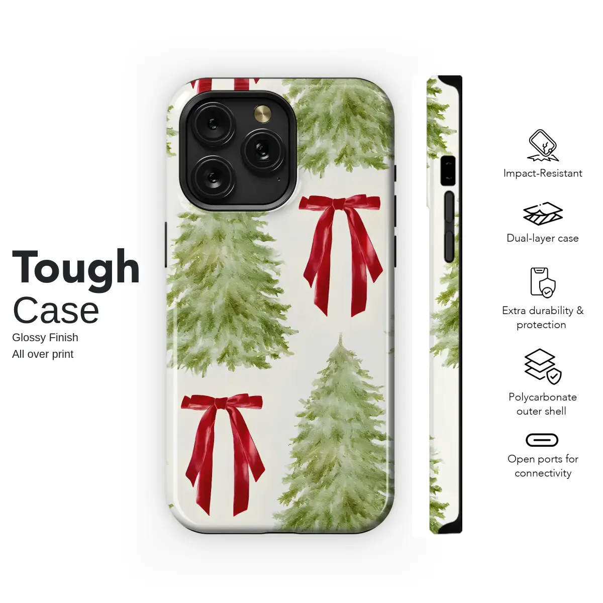 Wrap your daily essentials in the magic of the season with a design that feels like a classic Christmas card come to life. Picture a serene winter forest, where snow-dusted pine trees stand tall and proud, captured in beautiful watercolor detail. Each evergreen is unique, painted in soft, gentle green hues that evoke a crisp, woodland calm. Scattered playfully between the trees are vibrant, scarlet red bows, their ribbons cascading as if tied perfectly just for you. This timeless pairing of rich red and forest green against a soft, creamy backdrop creates an immediate feeling of warmth, nostalgia, and sophisticated festive cheer. This is more than just a pretty pattern; it’s a little piece of holiday art that brings the cozy joy of Christmas into your everyday life, a small celebration you can carry with you. This elegant and artistic accessory is the perfect way to showcase your love for the most wonderful time of the year, and it makes a thoughtful stocking stuffer or secret Santa gift for anyone who adores traditional holiday charm. Let this classic winter scene add a touch of yuletide spirit to your style, reminding you of carol singing, crackling fires, and the simple, profound beauty of a Christmas forest.