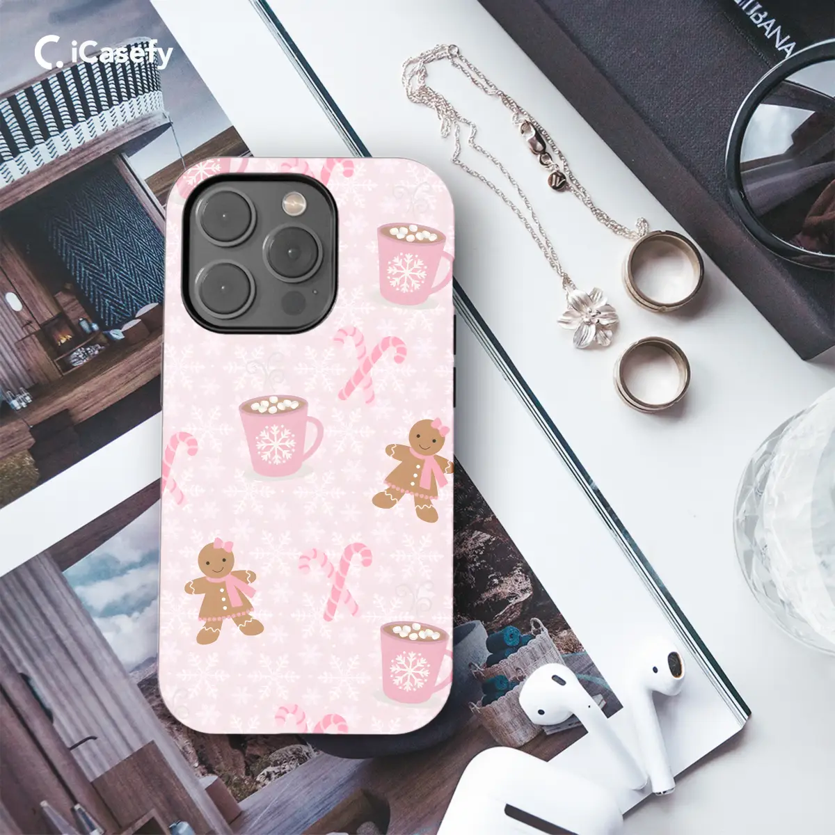 Embrace the festive spirit this holiday season with our charming Gingerbread Hot Cocoa Phone Case! Its adorable design featuring pink gingerbread and whimsical hot cocoa will add a touch of sweetness to your daily phone routine. Crafted from sturdy and protective materials, this case ensures your device stays safe from bumps and scratches while spreading Christmas cheer wherever you go. Its precise cutouts provide easy access to all buttons and ports, ensuring a seamless experience. Let your phone join the holiday celebrations with this festive and functional phone case. Its unique design will complement any festive outfit and make it a standout accessory throughout the holiday season.