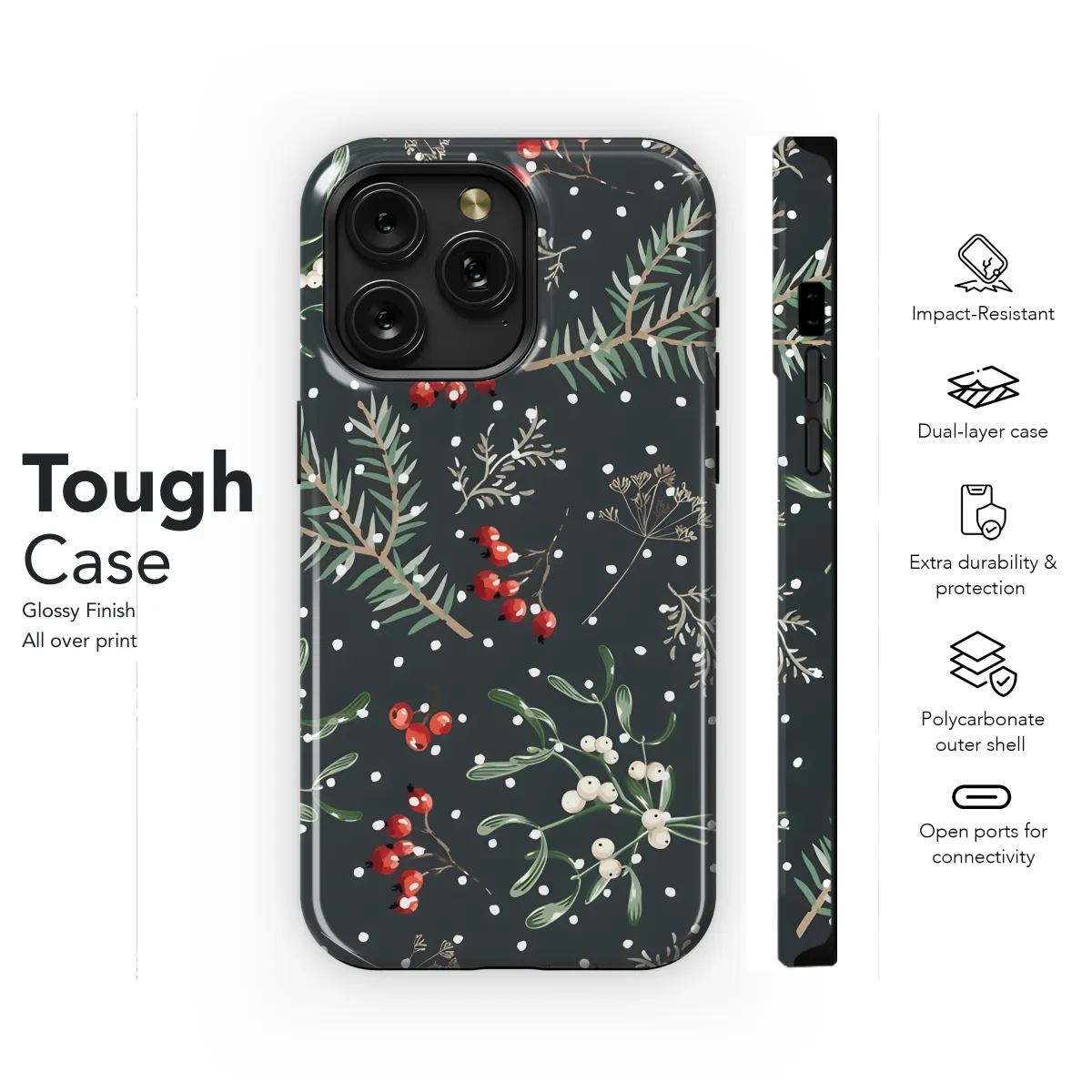 **Celebrate the magic of Christmas with our enchanting seamless mistletoe phone case.** Adorned with a festive pattern of mistletoe and swirling designs, this case will bring Christmas cheer to your smartphone all season long. Available for a wide range of iPhone, Samsung, and Pixel models, it's the perfect way to protect your device while expressing your holiday spirit. Crafted from durable materials, our phone case provides reliable protection against scratches, bumps, and drops. The precise cutouts ensure easy access to all buttons and ports, so you can use your phone without any hassle. Give the gift of holiday cheer to yourself or a loved one with our Christmas Seamless Pattern Mistletoe Phone Case. It's the perfect stocking stuffer or secret Santa gift that will spread joy throughout the season.