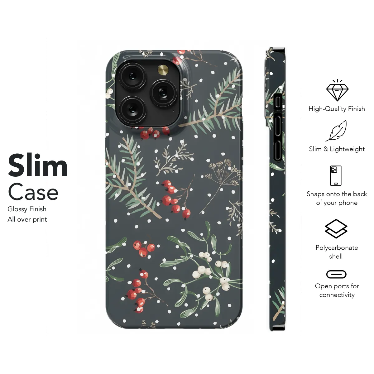 **Celebrate the magic of Christmas with our enchanting seamless mistletoe phone case.** Adorned with a festive pattern of mistletoe and swirling designs, this case will bring Christmas cheer to your smartphone all season long. Available for a wide range of iPhone, Samsung, and Pixel models, it's the perfect way to protect your device while expressing your holiday spirit. Crafted from durable materials, our phone case provides reliable protection against scratches, bumps, and drops. The precise cutouts ensure easy access to all buttons and ports, so you can use your phone without any hassle. Give the gift of holiday cheer to yourself or a loved one with our Christmas Seamless Pattern Mistletoe Phone Case. It's the perfect stocking stuffer or secret Santa gift that will spread joy throughout the season.