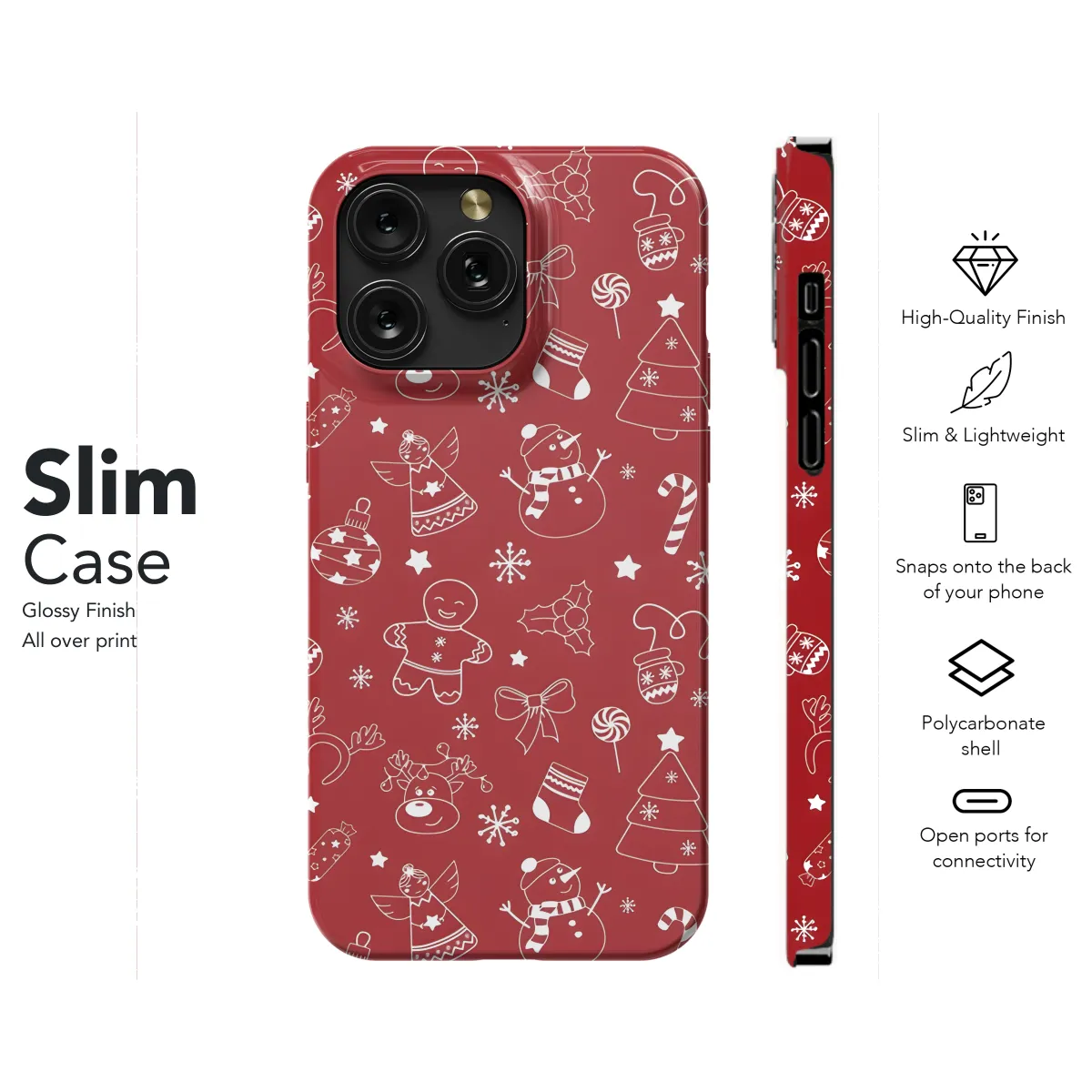 Protect your phone in style with this festive Christmas-themed case. The seamless pattern features classic holiday motifs like snowmen, snowflakes, and Christmas trees, all in a vibrant and eye-catching design. Made from durable materials, this case will keep your phone safe from bumps and scratches, while the slim profile ensures it won't add bulk to your pocket or purse. Compatible with a variety of iPhone, Samsung, and Pixel models, this case is perfect for anyone who wants to add a touch of holiday cheer to their tech.