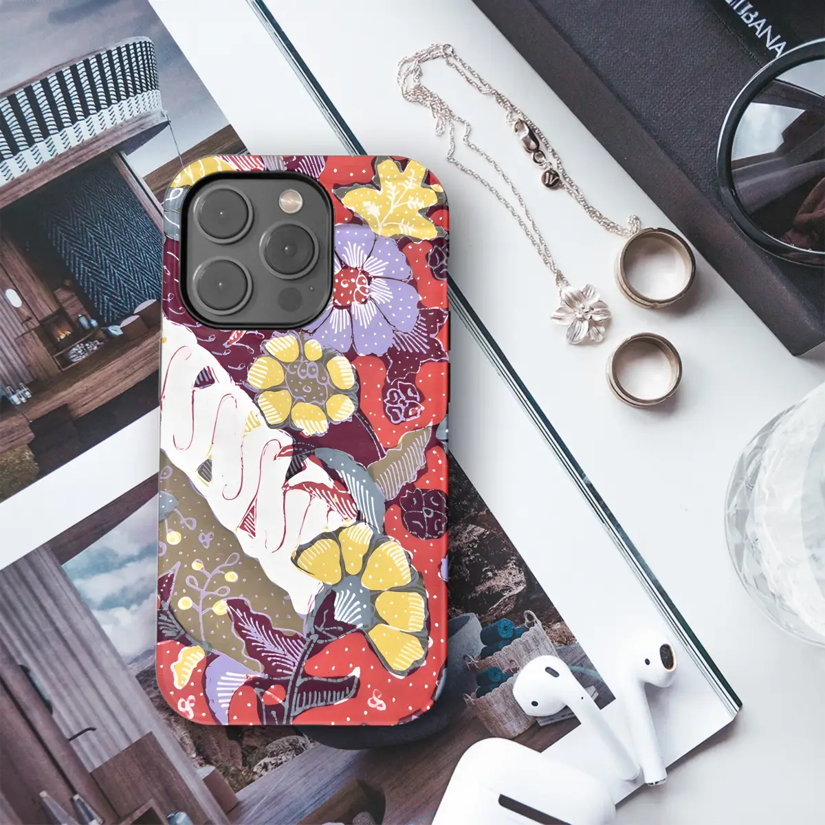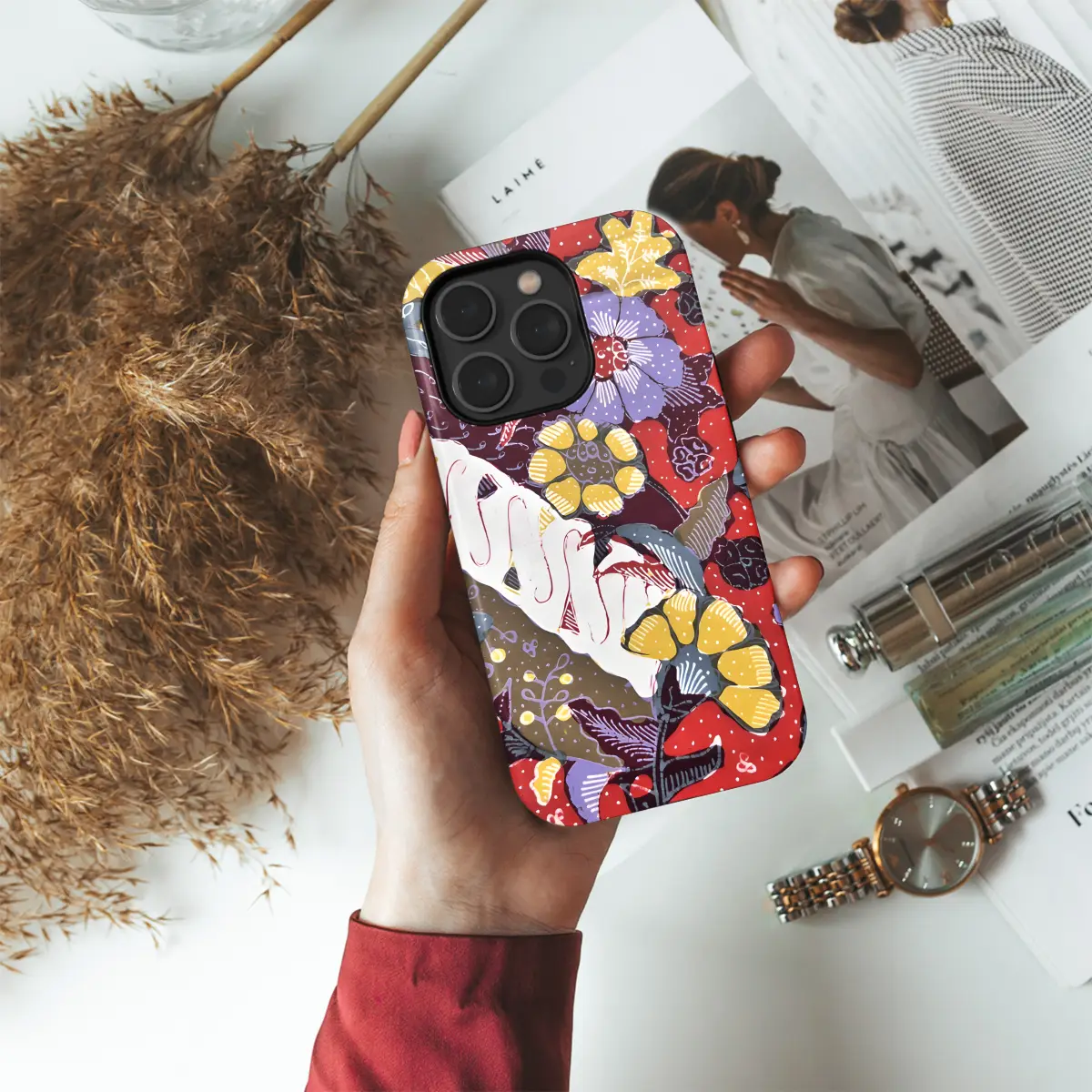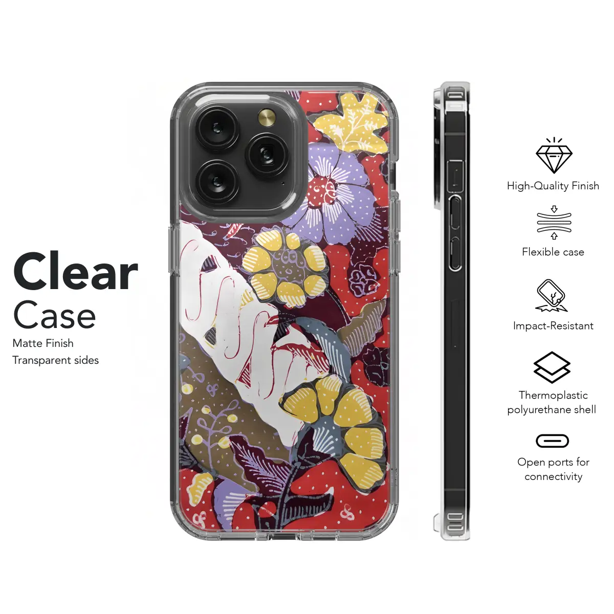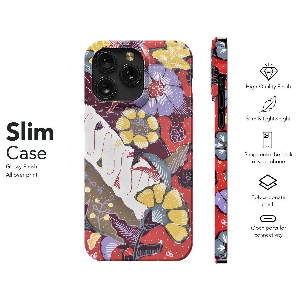 Celebrate the vibrant artistry of Cirebon Batik with this captivating phone case. Featuring intricate floral motifs rendered in radiant hues of red and white, it seamlessly adorns your device, offering both style and protection. Whether you prefer the sleek lines of an iPhone, the versatility of a Samsung, or the innovative Pixel, this case elegantly complements them all.