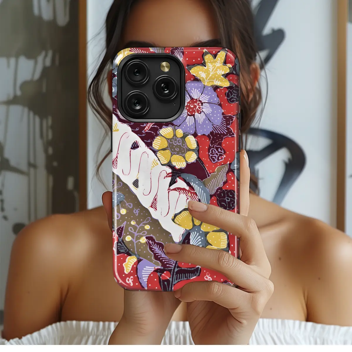 Celebrate the vibrant artistry of Cirebon Batik with this captivating phone case. Featuring intricate floral motifs rendered in radiant hues of red and white, it seamlessly adorns your device, offering both style and protection. Whether you prefer the sleek lines of an iPhone, the versatility of a Samsung, or the innovative Pixel, this case elegantly complements them all.