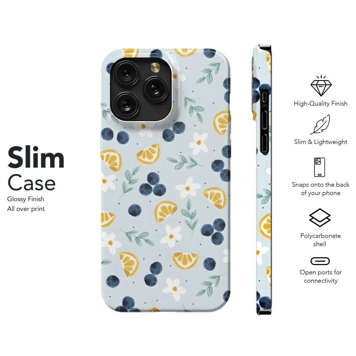 Add a touch of summer sunshine to your everyday essentials with this delightful design. Featuring a charming watercolor pattern of juicy orange slices, plump blueberries, and delicate white daisies, this vibrant print exudes a cheerful and refreshing aesthetic. The soft pastel blue background creates a calming backdrop for the cheerful fruit and floral motifs, making it a perfect choice for those who appreciate a touch of elegance and whimsy. This unique and eye-catching design is printed using high-quality inks that are vibrant and long-lasting, ensuring your new accessory will remain beautiful for years to come. Its lightweight and durable construction guarantees it will seamlessly integrate into your daily routine, adding a personalized and stylish touch to your belongings. Perfect for adding a pop of color and personality, this design is a wonderful way to express your individual style. The intricate details and vibrant colors make this print a must-have for any fashion-forward individual looking to showcase their unique taste. Elevate your style and brighten your day with this charming and refreshing accessory.