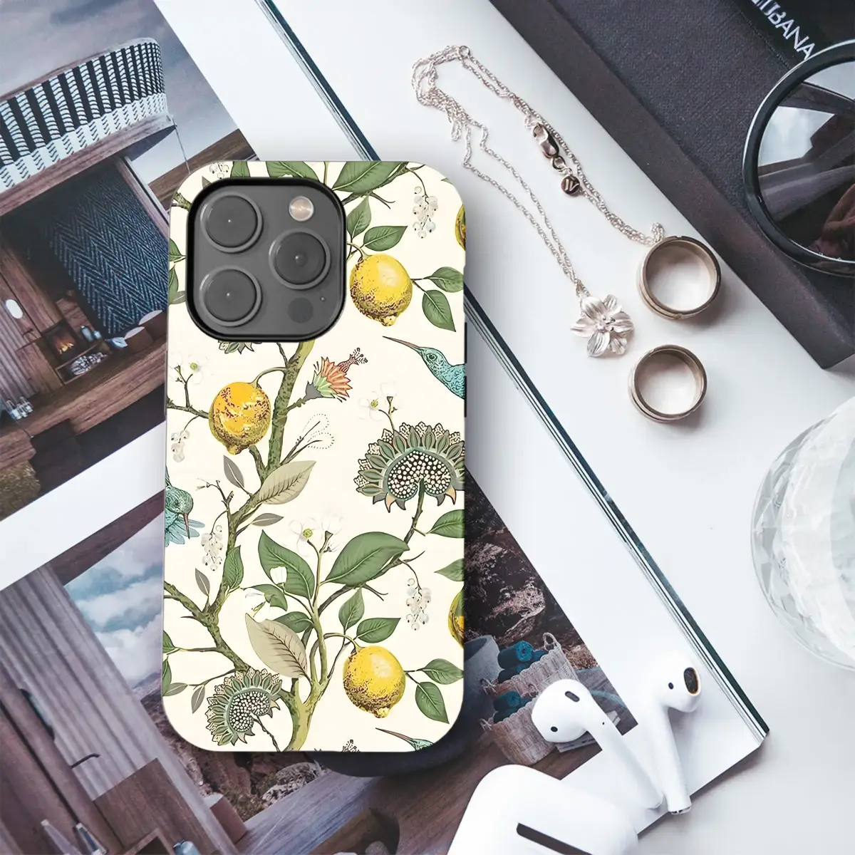 Adorn your device with this exquisite botanical design, featuring vibrant hummingbirds flitting amidst lush lemon trees and ornate floral blooms. The rich colors and intricate details of this print create a sophisticated and elegant aesthetic, perfect for those who appreciate nature's artistry. This stunning artwork is printed using high-quality, vibrant inks ensuring a long-lasting, crisp image that won't fade. The design’s detailed blossoms, juicy lemons, and graceful birds create a captivating visual that will elevate your everyday style. This unique pattern is sure to turn heads and spark conversations wherever you go. Its timeless appeal makes it a perfect gift for yourself or a loved one who appreciates beauty and quality. Express your personality with this exceptional design, a true testament to refined taste and an appreciation for natural elegance. Showcase your individual style and protect your device with this beautiful and durable accessory. This gorgeous print is available on various models, so find your perfect fit. Shop now and add a touch of vibrant nature to your life. #botanicaldesign #hummingbirds #lemons #floralprint #elegantstyle #natureinspired #uniquegifts #personalizedgifts #highqualityprint #stylishdesign
