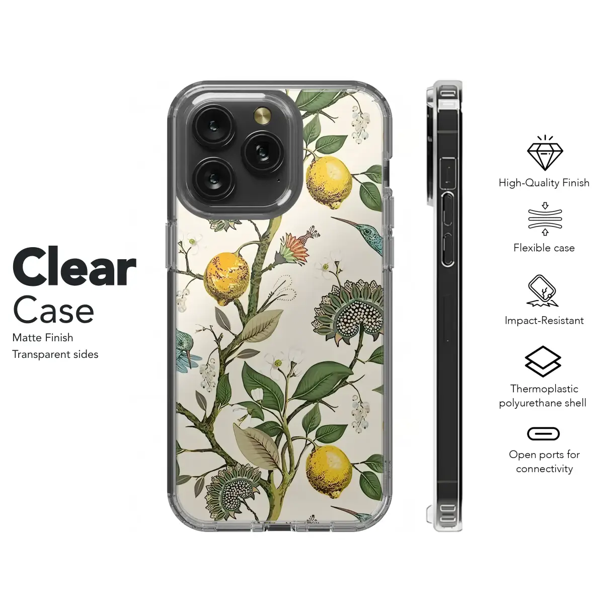 Adorn your device with this exquisite botanical design, featuring vibrant hummingbirds flitting amidst lush lemon trees and ornate floral blooms. The rich colors and intricate details of this print create a sophisticated and elegant aesthetic, perfect for those who appreciate nature's artistry. This stunning artwork is printed using high-quality, vibrant inks ensuring a long-lasting, crisp image that won't fade. The design’s detailed blossoms, juicy lemons, and graceful birds create a captivating visual that will elevate your everyday style. This unique pattern is sure to turn heads and spark conversations wherever you go. Its timeless appeal makes it a perfect gift for yourself or a loved one who appreciates beauty and quality. Express your personality with this exceptional design, a true testament to refined taste and an appreciation for natural elegance. Showcase your individual style and protect your device with this beautiful and durable accessory. This gorgeous print is available on various models, so find your perfect fit. Shop now and add a touch of vibrant nature to your life. #botanicaldesign #hummingbirds #lemons #floralprint #elegantstyle #natureinspired #uniquegifts #personalizedgifts #highqualityprint #stylishdesign