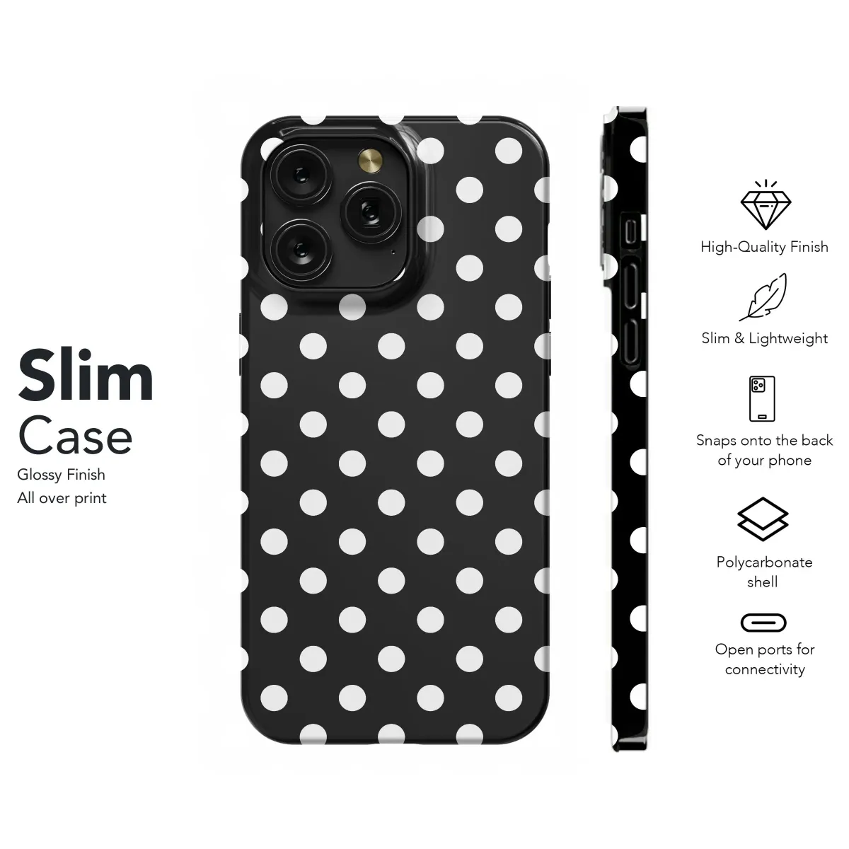 Timeless style at your fingertips. This classic black and white dots phone case offers sleek protection for your iPhone, Samsung, or Pixel device. Get yours today!