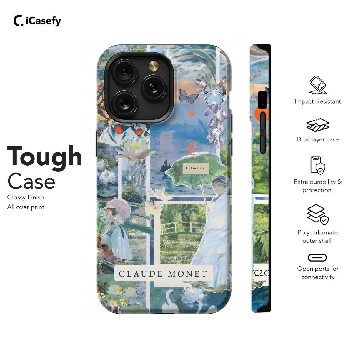 Immerse yourself in the world of Impressionism with our Claude Monet Collage Phone Case. Featuring a captivating collage of Claude Monet's most renowned works, this case pays homage to the Impressionist master. From water lilies to serene landscapes, each image captures the essence of Monet's artistic genius. Crafted for both style and protection, it safeguards your phone while showcasing your appreciation for fine art. With precise cutouts for ports and buttons, it ensures seamless functionality. Carry a gallery of Impressionist beauty in your pocket with our Claude Monet Collage Phone Case today!