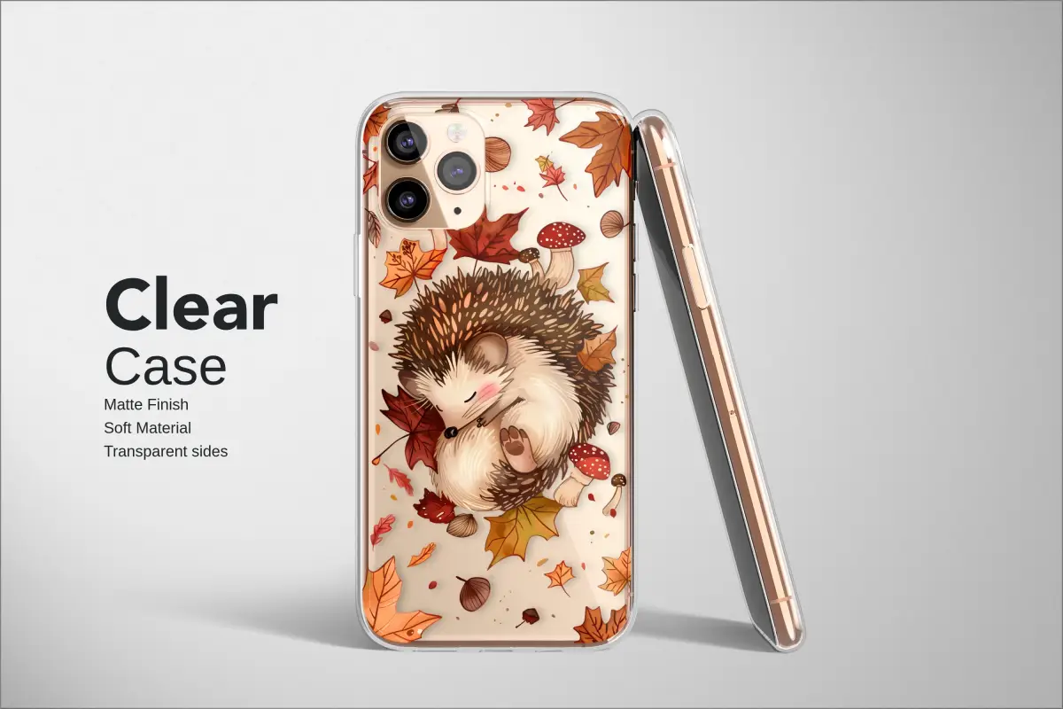 Embrace the heartwarming spirit of the cozy season and give your most essential companion a touch of woodland magic with this enchanting illustrated design. Imagine a peaceful autumn forest floor where a sweetly slumbering hedgehog, with the tiniest smile and soft, rosy cheeks, is curled up in a blissful dream upon a soft blanket of swirling crimson and golden maple leaves. This whimsical art captures the very soul of the cottagecore aesthetic, evoking the feeling of a crisp walk in the woods and the comforting warmth of a favorite sweater. Tiny, magical toadstools and rich, earthy acorns dance in the air, completing this perfect hygge scene that brings a bit of nature's calm to your busy day. More than just a durable guardian for your device, it's a portable piece of nature-inspired art that tells a story. This beautiful autumn accessory makes a thoughtful gift for the nature lover, hedgehog enthusiast, or anyone who adores a unique, artistic design. Choose between a dreamy, light cream background that feels like a misty morning, or a moody charcoal grey that evokes a peaceful twilight in the forest, and let this little woodland friend bring a smile to your face every time you reach for your tech.