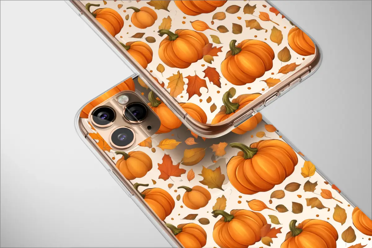 Embrace the heart of autumn with this enchanting design, a vibrant celebration of the coziest season. Imagine yourself walking through a moonlit pumpkin patch on a crisp October night; this artwork captures that very feeling. Plump, cheerful pumpkins in rich shades of harvest orange seem to float against a dramatic, deep black canvas, creating a stunning visual pop. They are joined by a cascade of falling leaves in warm hues of gold, amber, and russet, each one painted with delicate detail, as if caught in a gentle autumn breeze. This pattern isn't just a design; it's a feeling—the warmth of a spiced latte, the crunch of leaves underfoot, and the comforting glow of a bonfire. It's a perfect way to carry a piece of autumnal magic with you, adding a touch of seasonal charm and sophisticated warmth to your daily essentials. Ideal for anyone who lives for sweater weather, Halloween thrills, or the simple joy of a fall harvest, this art piece transforms your favorite accessory into a tribute to the most beautiful time of the year. Let this captivating pumpkin harvest scene wrap your world in the cozy, nostalgic embrace of fall.